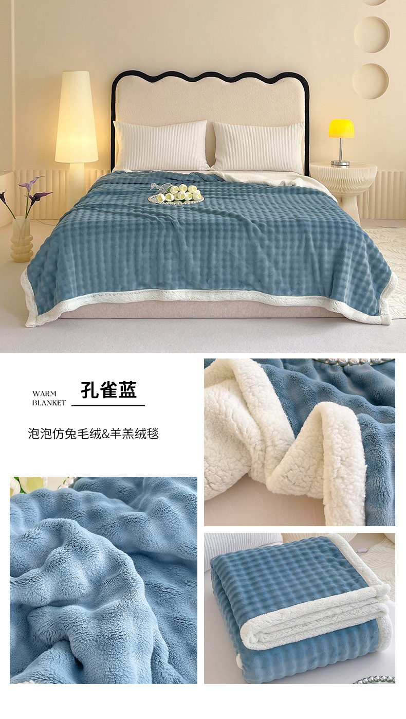 • 버블 래빗 퍼 더블 레이어 셰르파 담요 - 피콕 블루