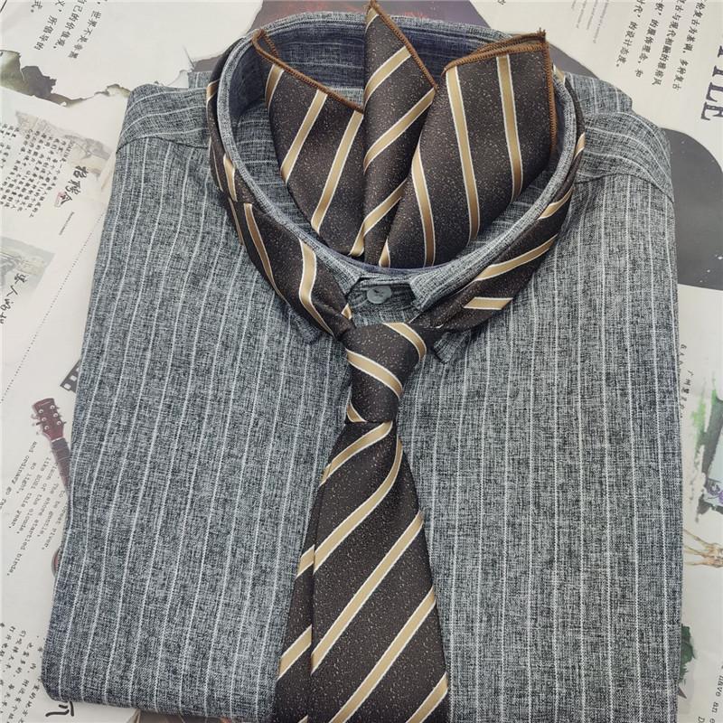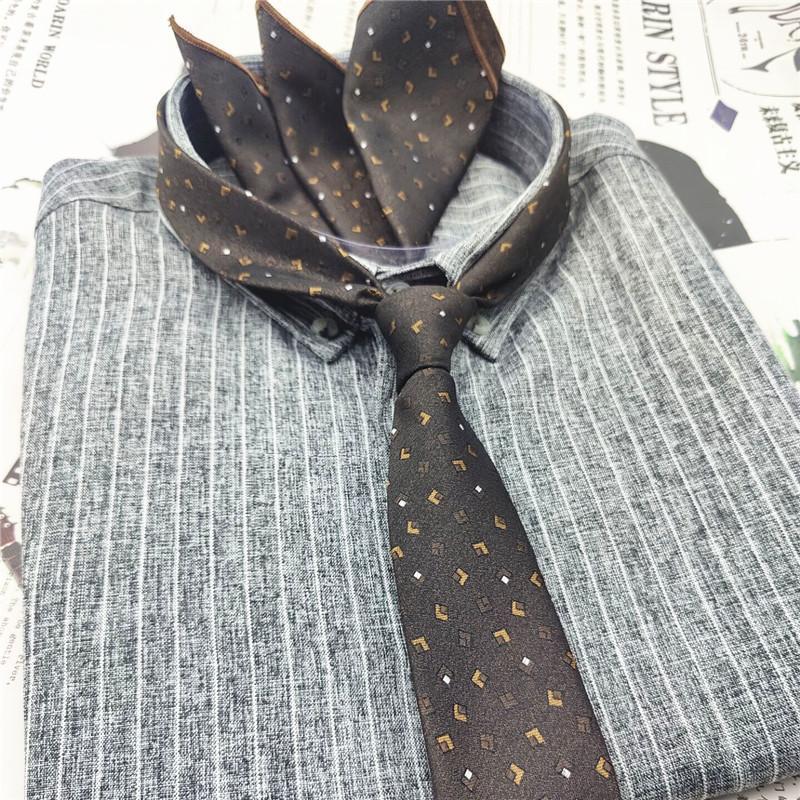 • SJ 브라운 얇은 스트라이프 타이 포켓 스퀘어