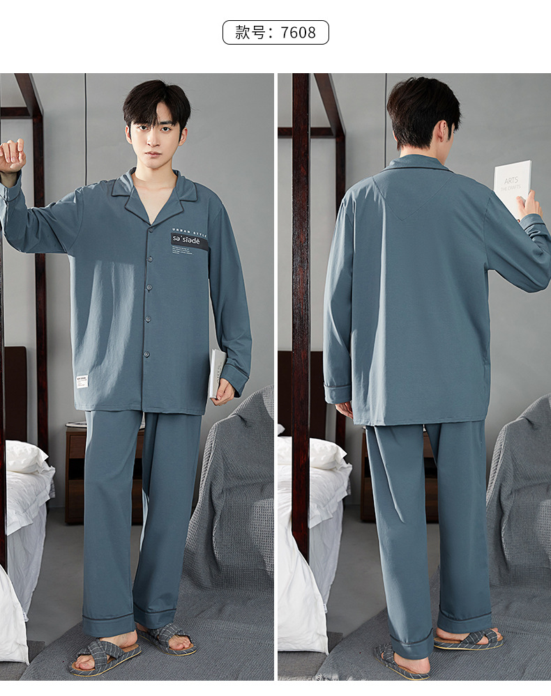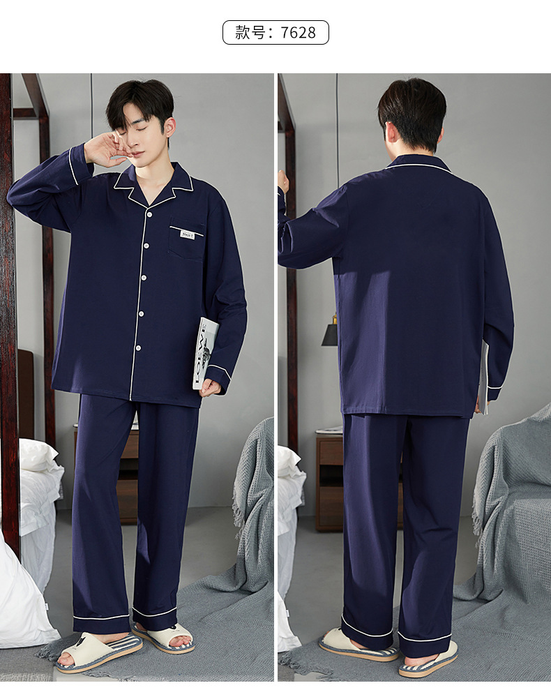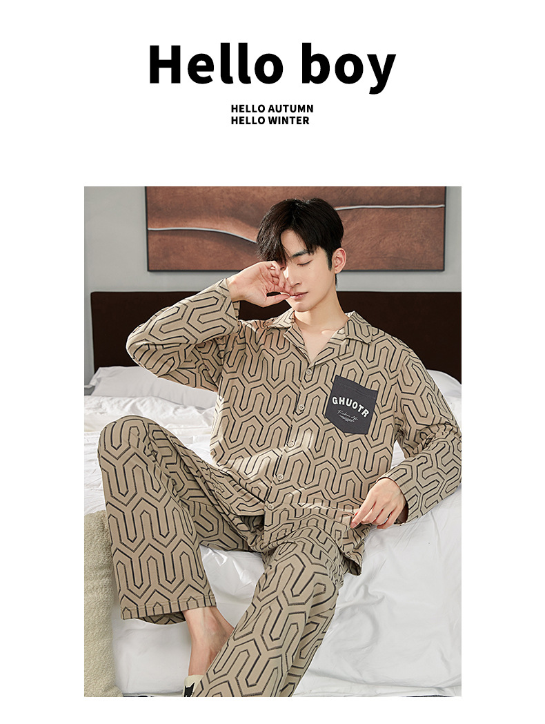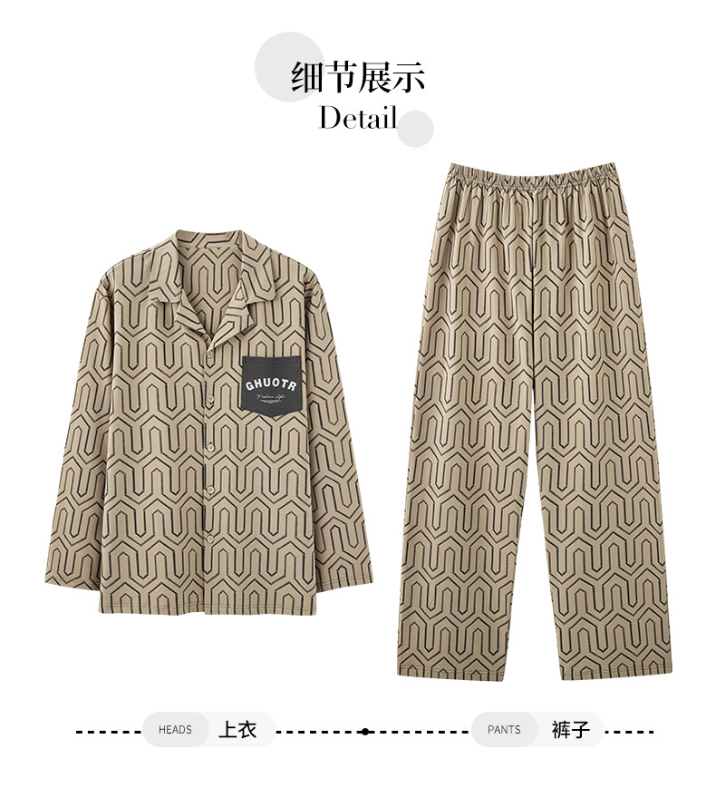 잠옷 남자의 봄과 가을 순면 옷깃 카디건 긴팔 바지 인쇄 두꺼운 가을과 겨울 바깥 옷 남성용 홈 옷스토어 가기