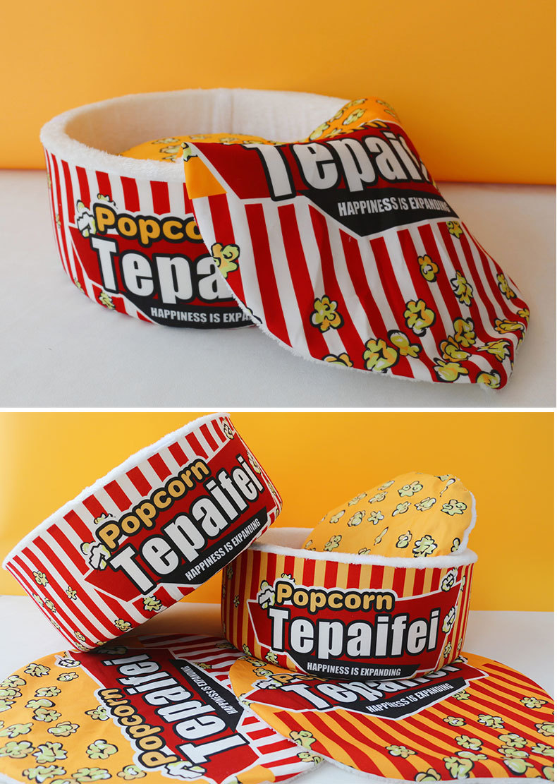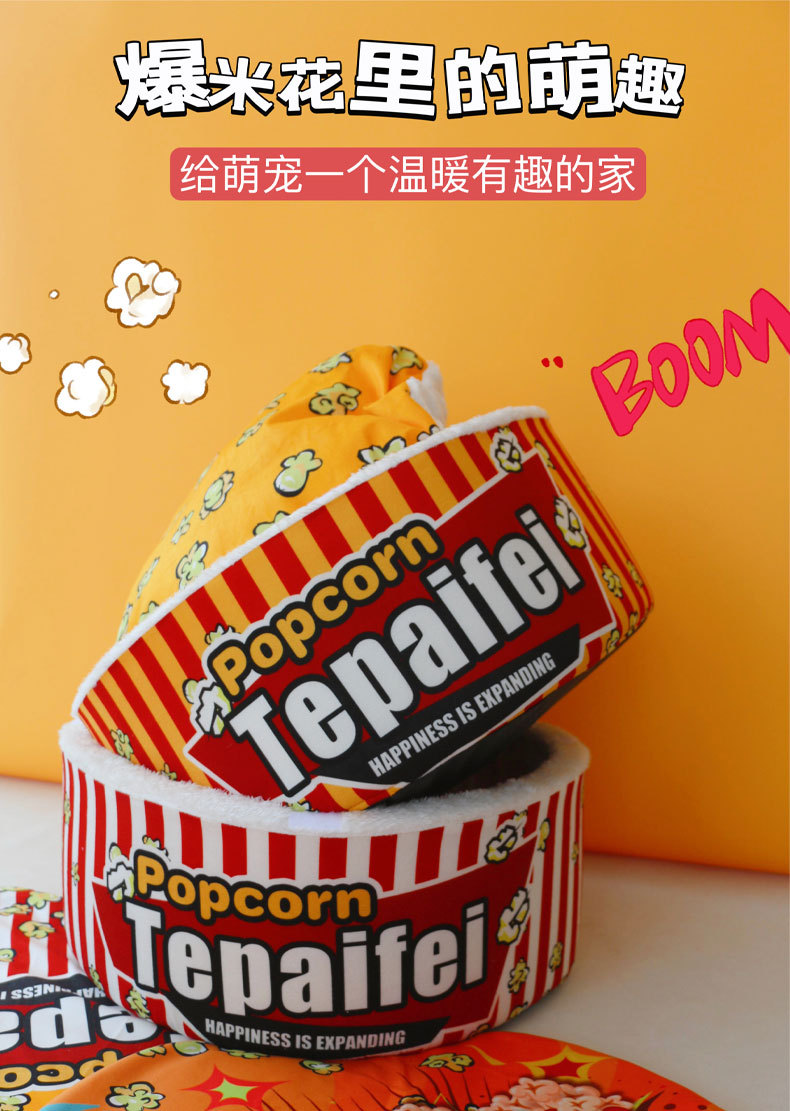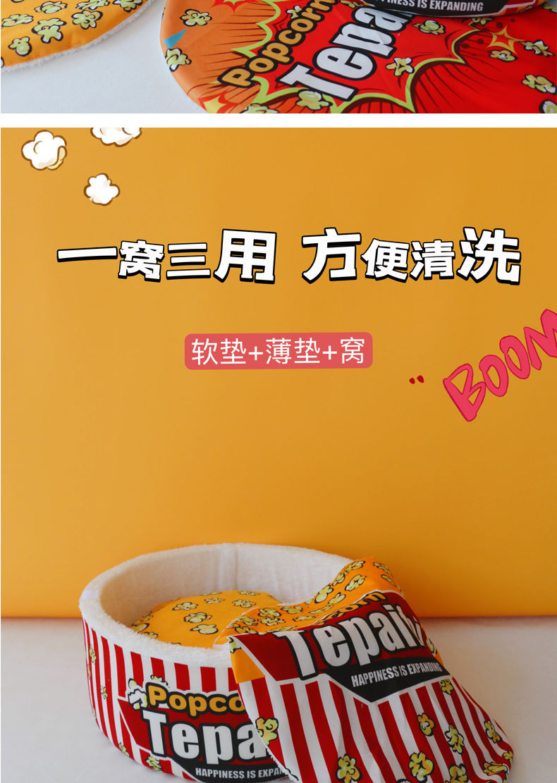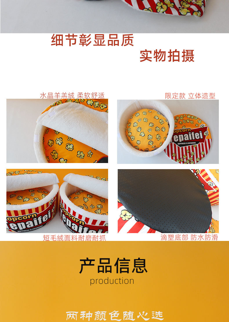 애완동물 침대 고양이 침대 강아지 침대 가을 겨울 신상품 2026 팝콘 스타일 반밀폐형 플러시 플러스 벨벳 사계절 사용 가능