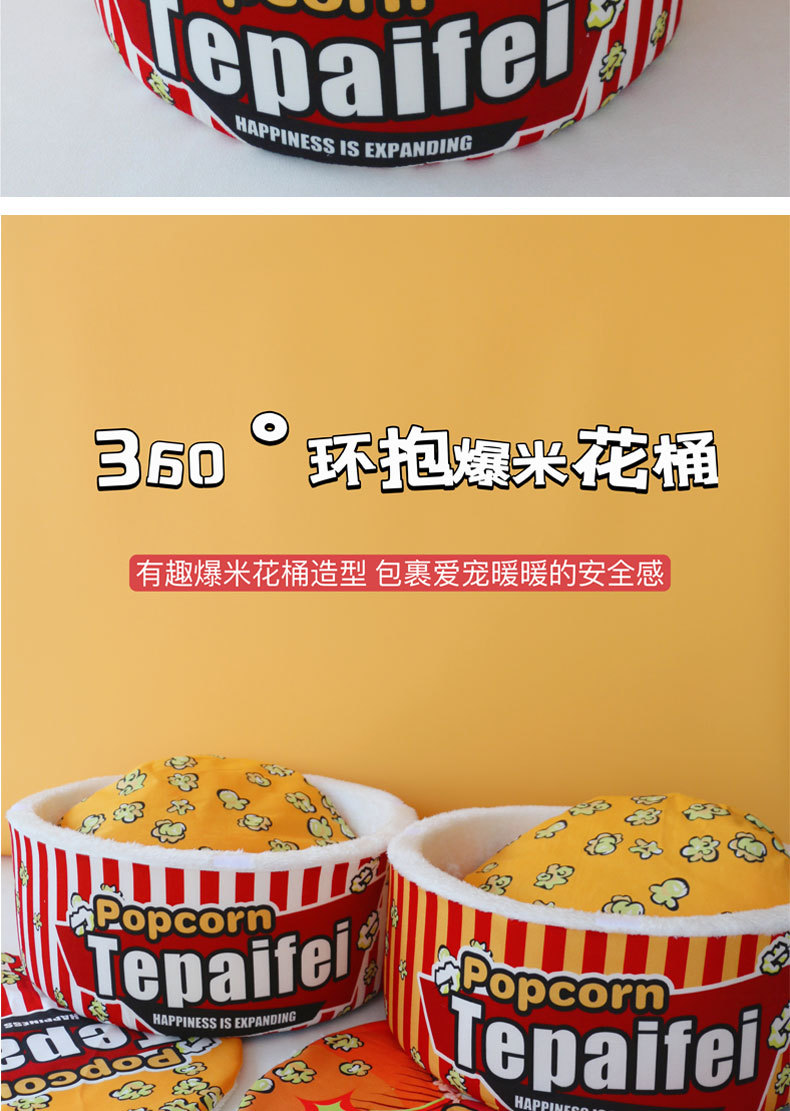 애완동물 침대 고양이 침대 강아지 침대 가을 겨울 신상품 2026 팝콘 스타일 반밀폐형 플러시 플러스 벨벳 사계절 사용 가능스토어 가기