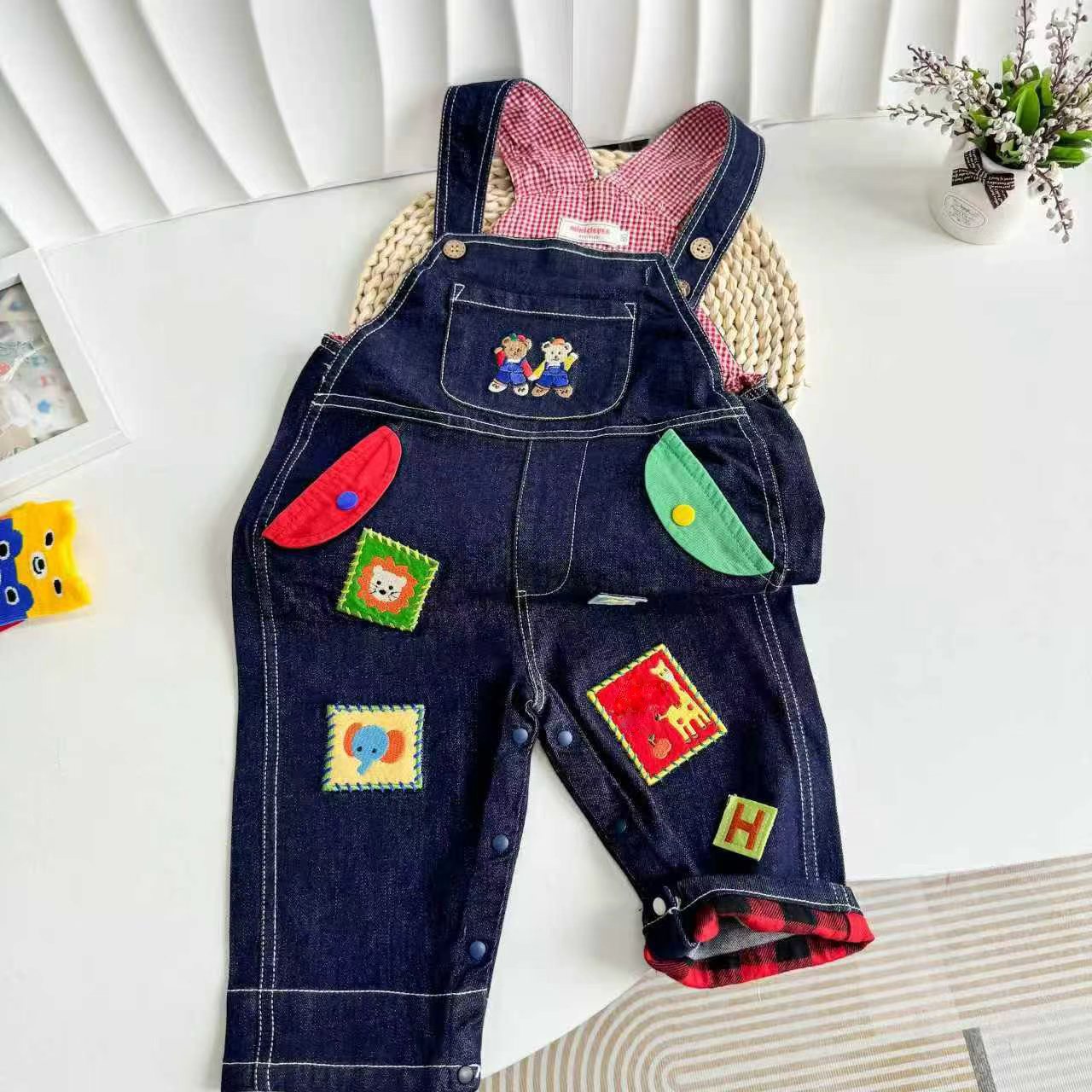 현재 인기 판매 중인 24 가을 신상 아동복, 정교한 자수 사진 액자 곰돌이 무늬 면 멜빵바지 6002