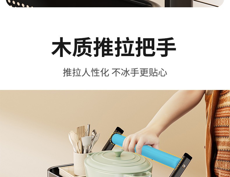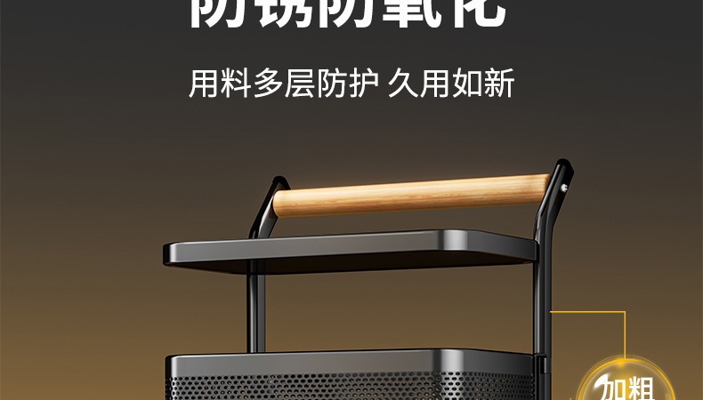 • 6겹 검정색* 나무 손잡이 트롤리 - 탈착식 메쉬 바구니