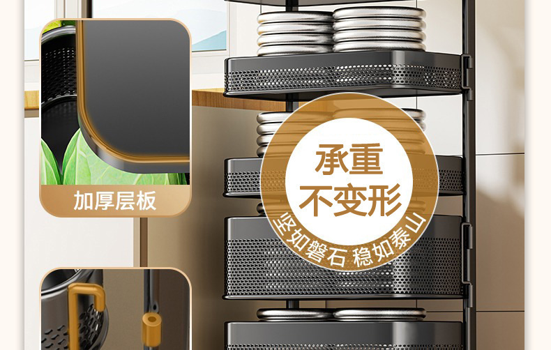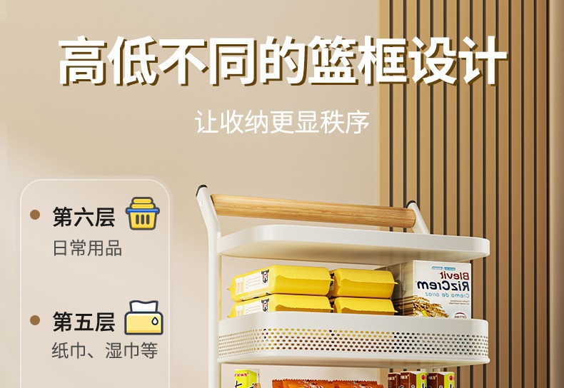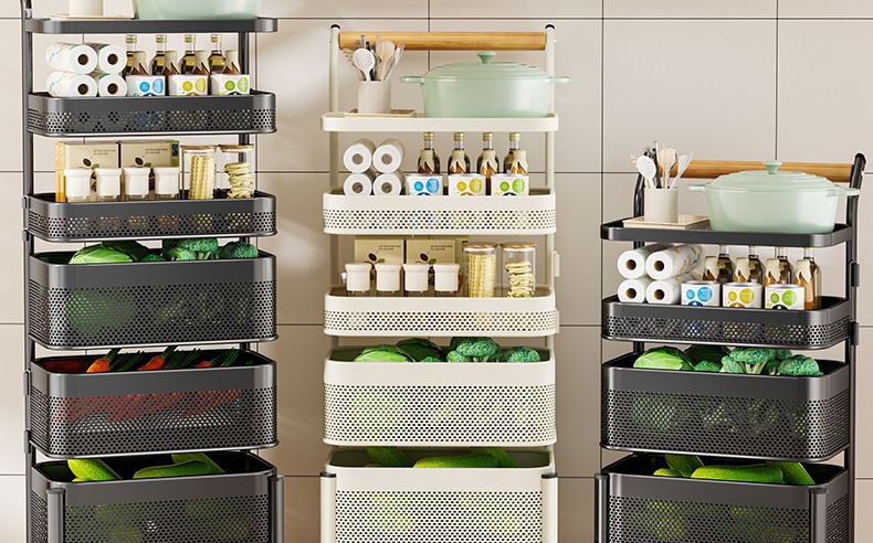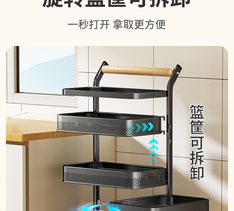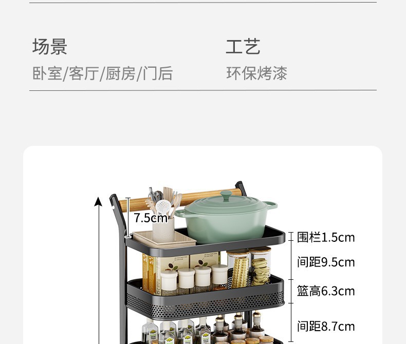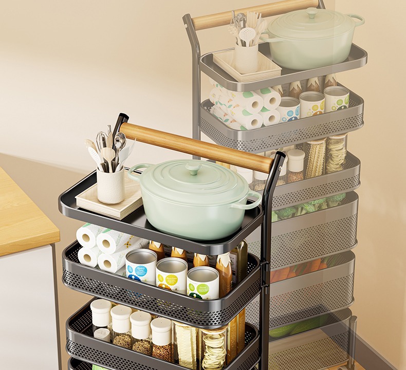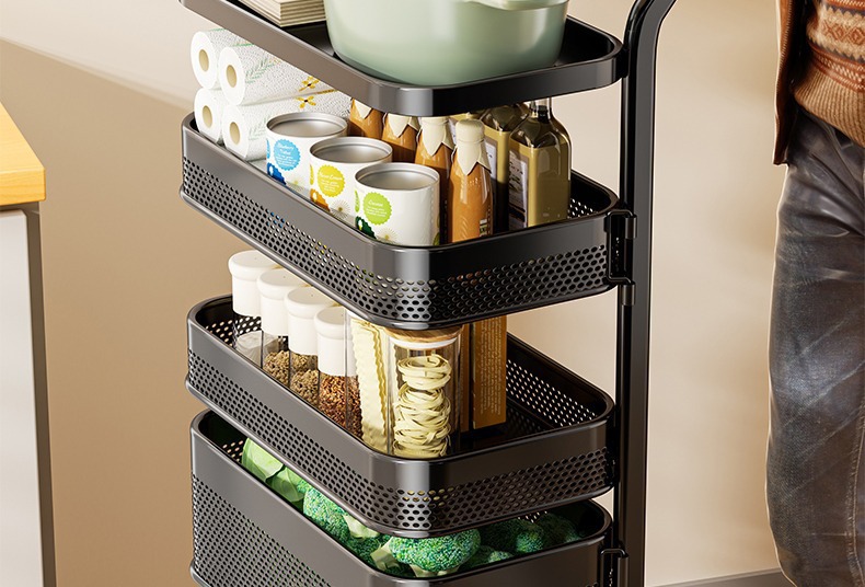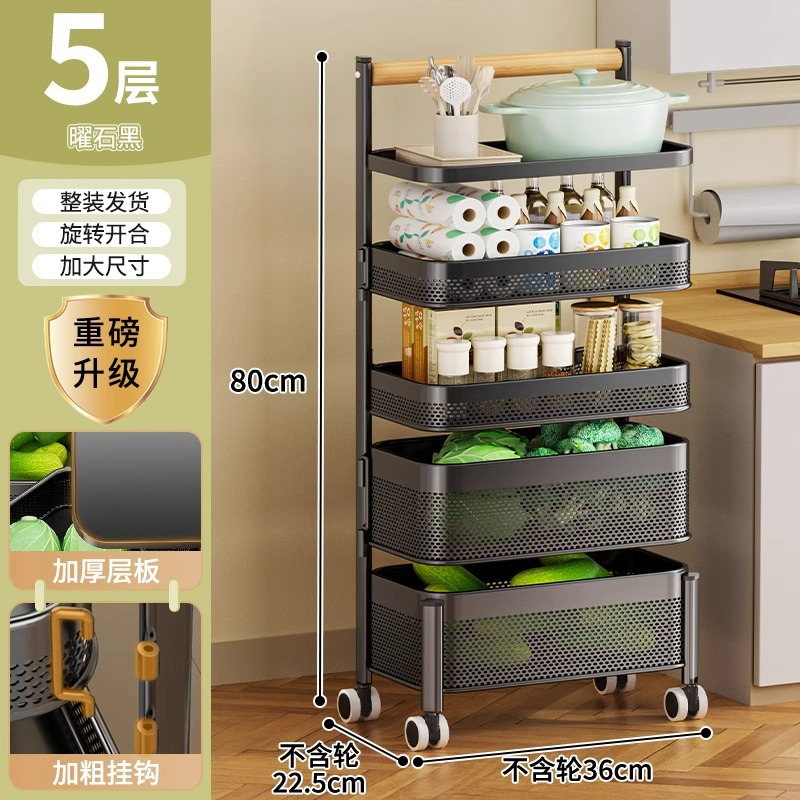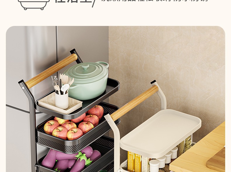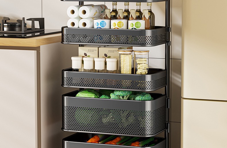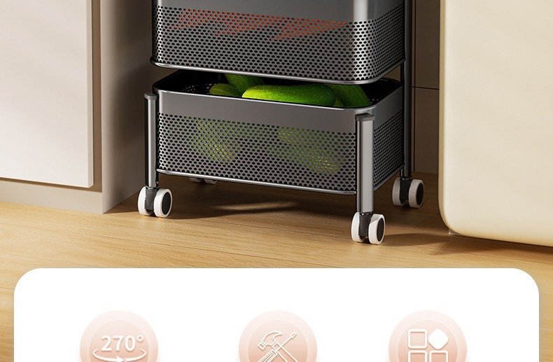 주방 보관 랙 바닥 서 모바일 야채 스낵 회전 다층 보관 캐비닛 냉장고 측면 초좁은 갭 카트