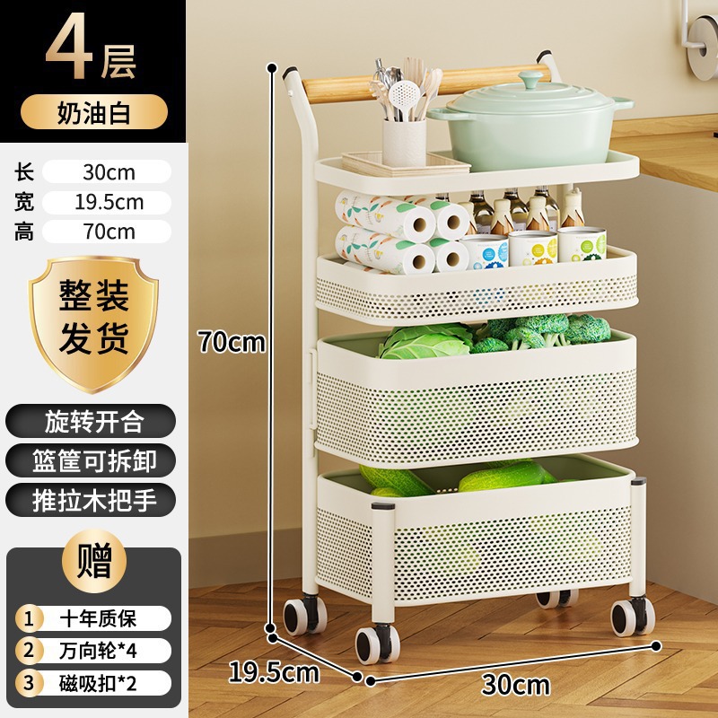 • 4겹 흰색* 나무 손잡이 트롤리 - 탈착식 메쉬 바구니