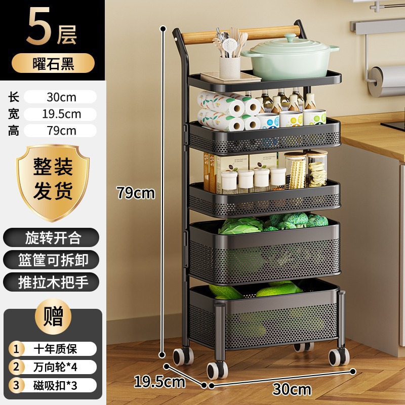 • 5겹 검정색* 나무 손잡이 트롤리 - 탈착식 메쉬 바구니