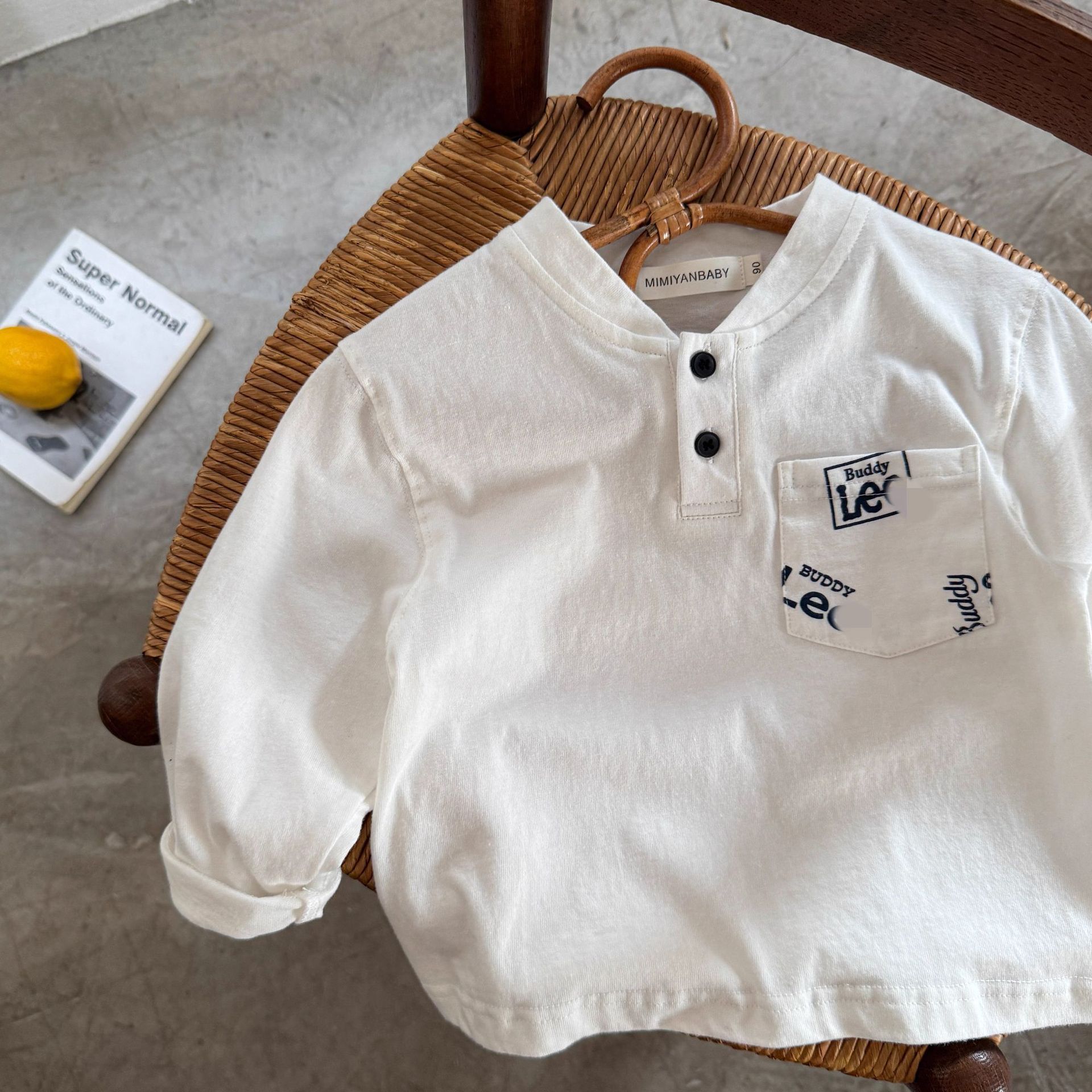 어린이 긴팔 폴로 칼라 티셔츠 2025 가을 한국 자수 탑 소년과 소녀를위한 아기 바닥 셔츠 도매