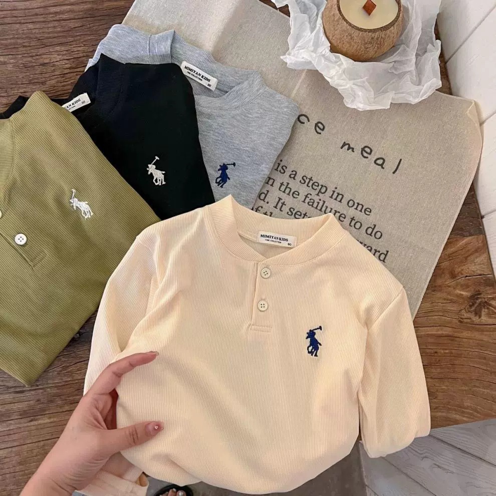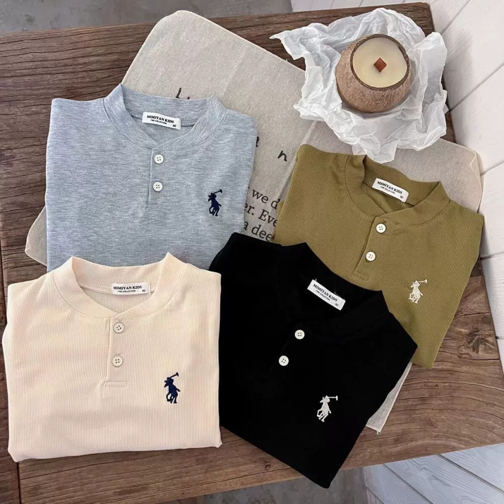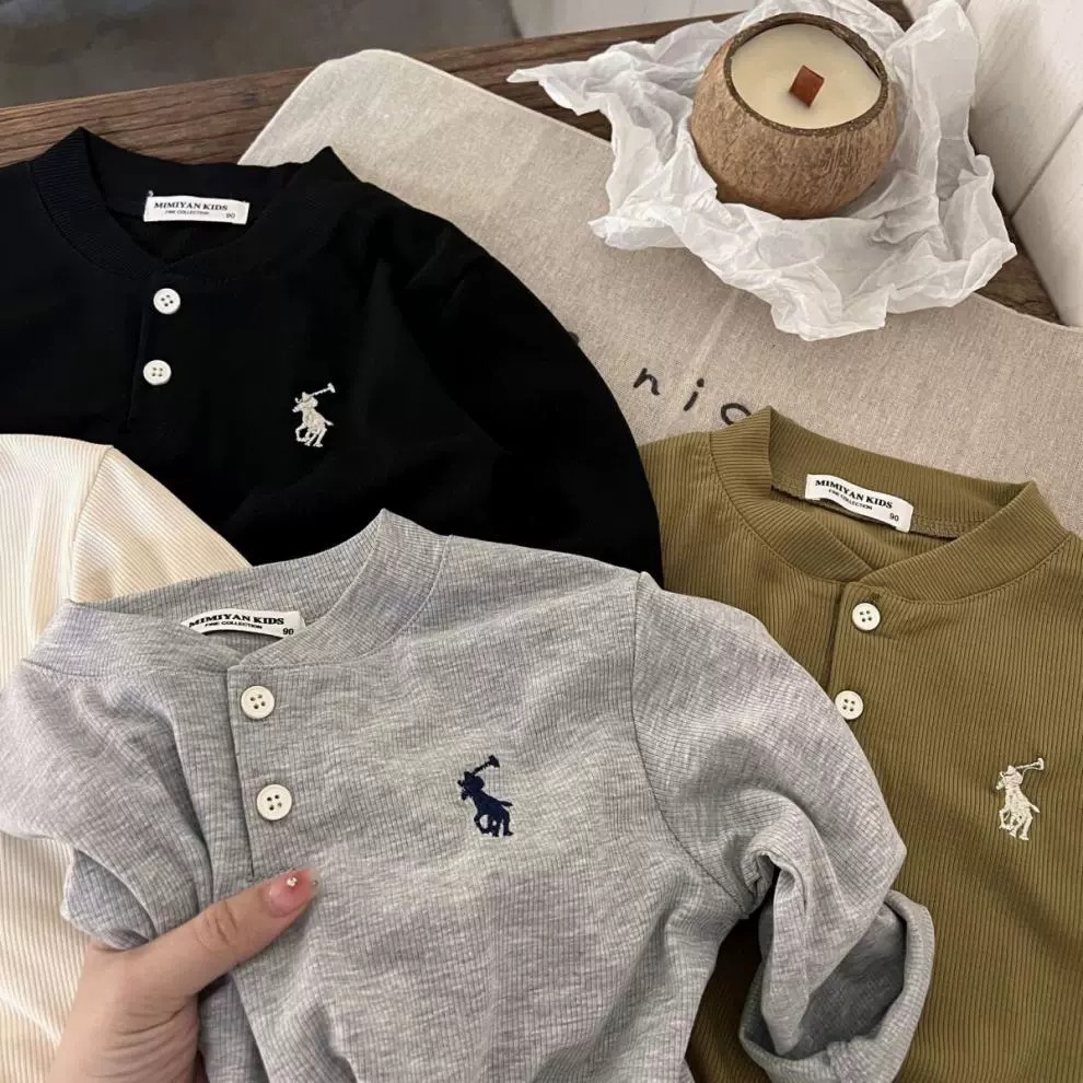어린이 긴팔 폴로 칼라 티셔츠 2025 가을 한국 자수 탑 소년과 소녀를위한 아기 바닥 셔츠 도매스토어 가기