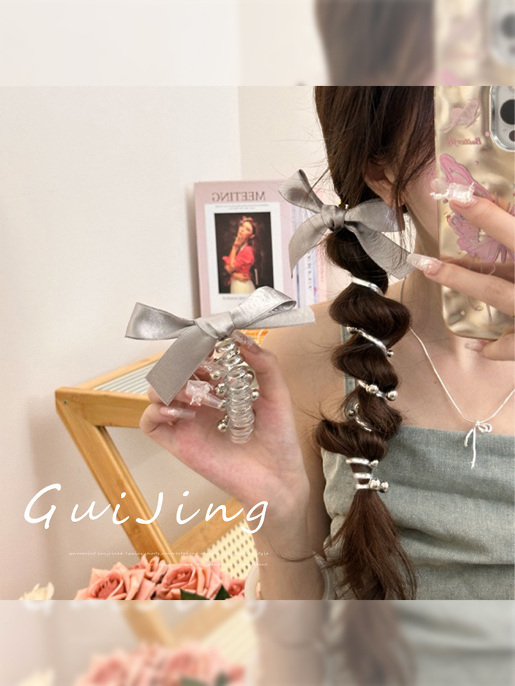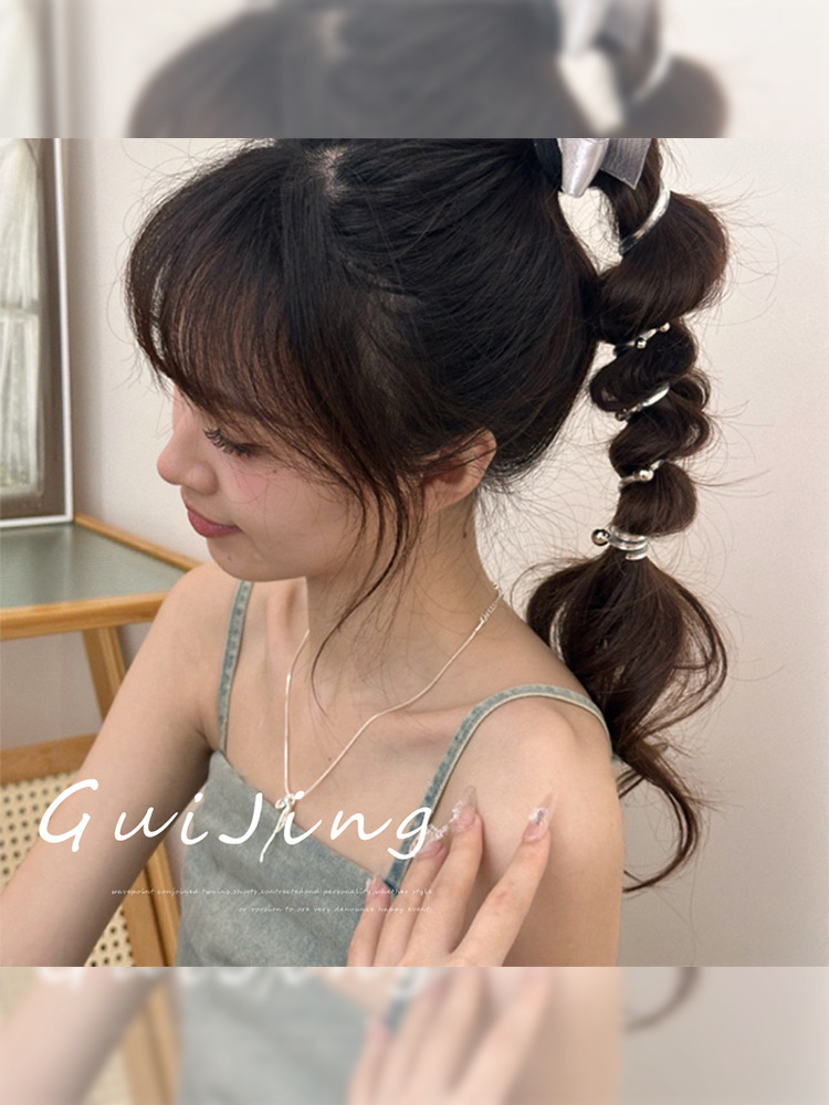 실버 활 구슬 전화 라인 헤어 로프 여성의 머리 뒷면 고급 포니 테일 버블 브레이드 헤어 고무 텐더 헤어 링