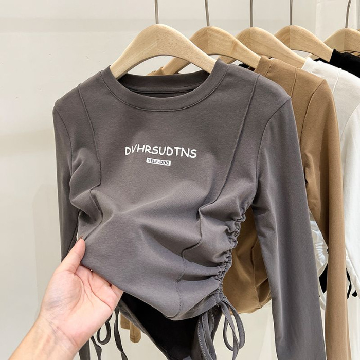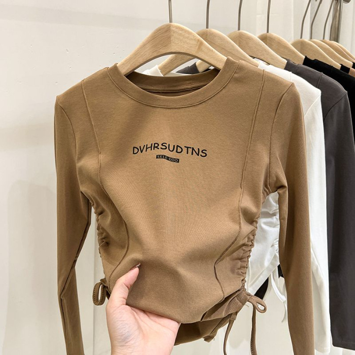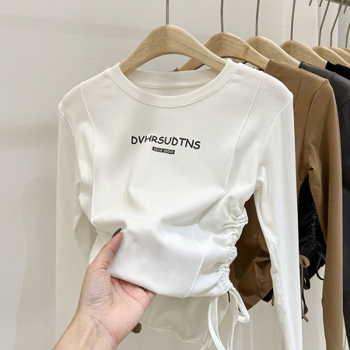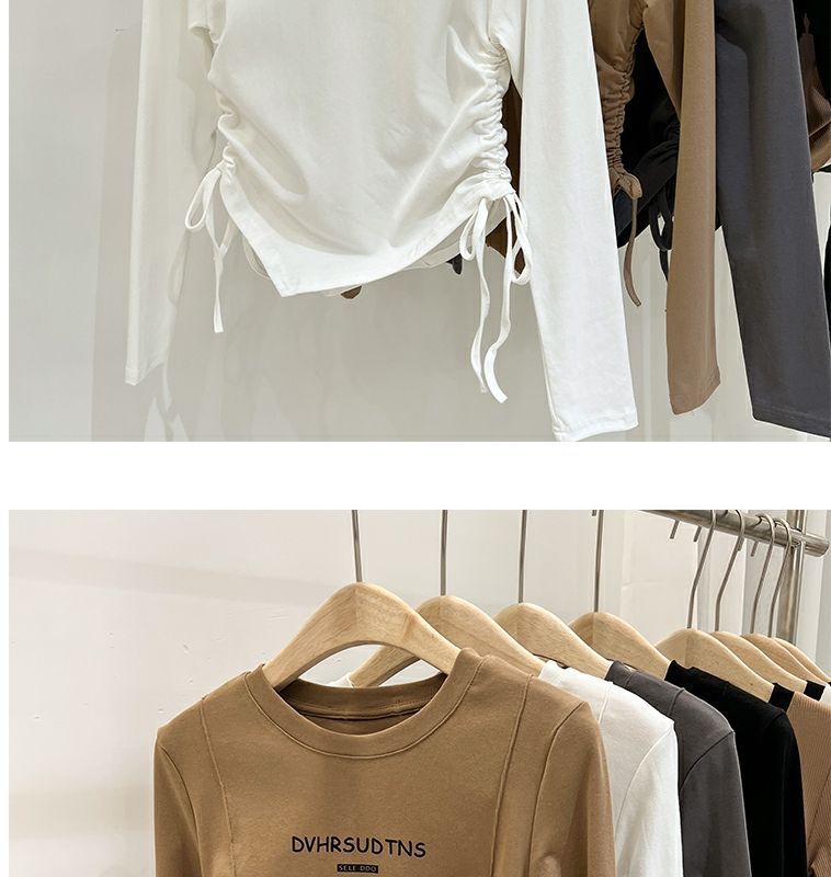 소녀 가을 짧은 현악기 탑 2024 새로운 스타일 중대형 어린이 내베이스 셔츠 어린이 서양식 긴 소매 티셔츠스토어 가기