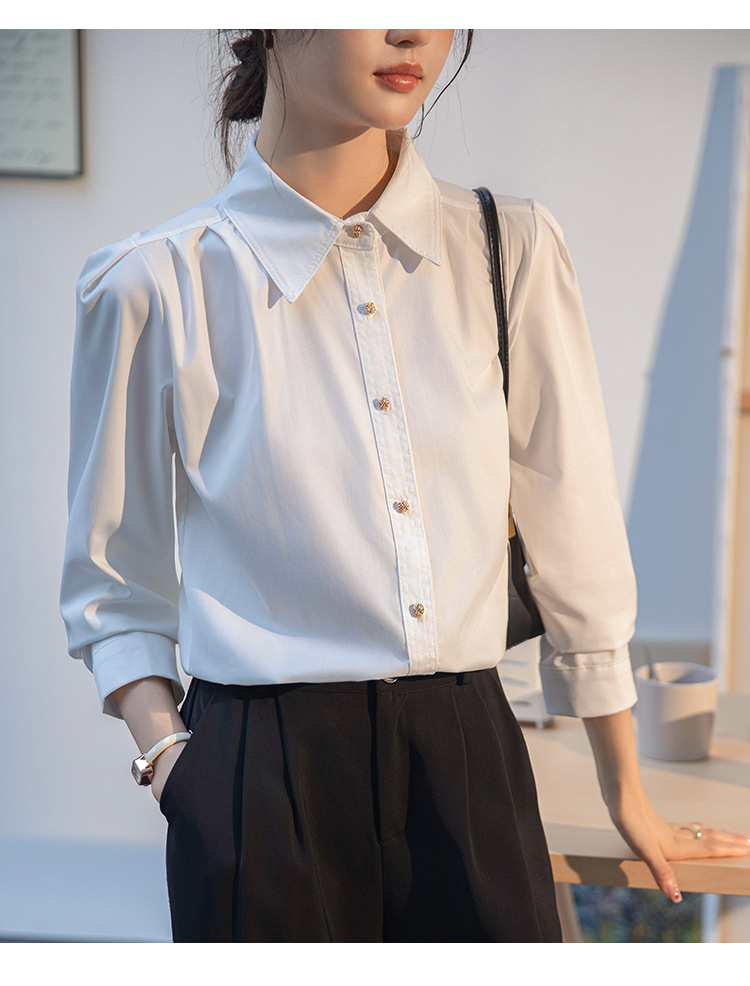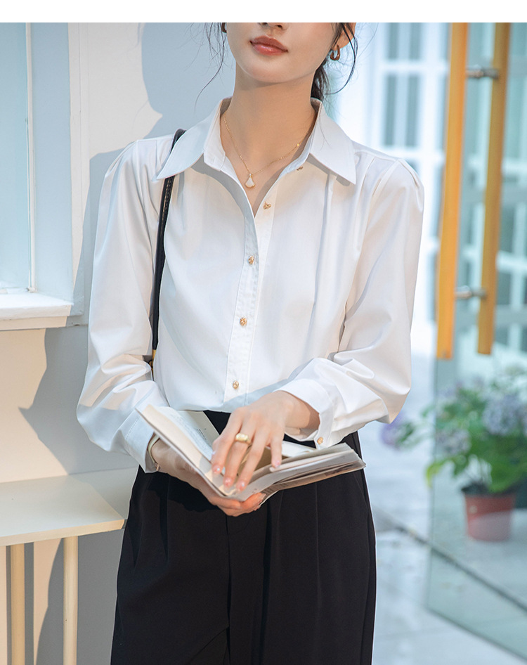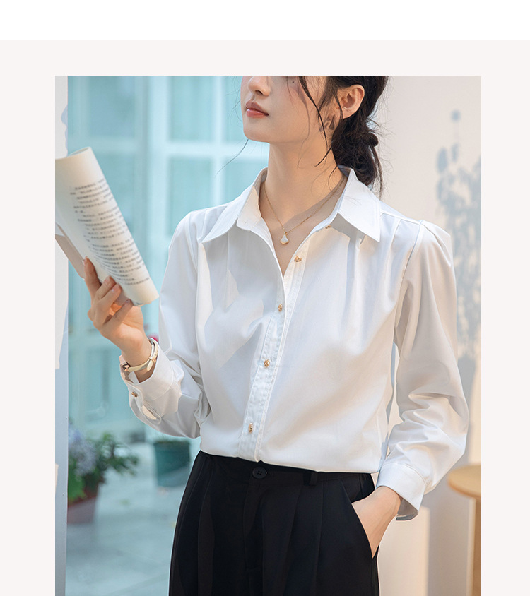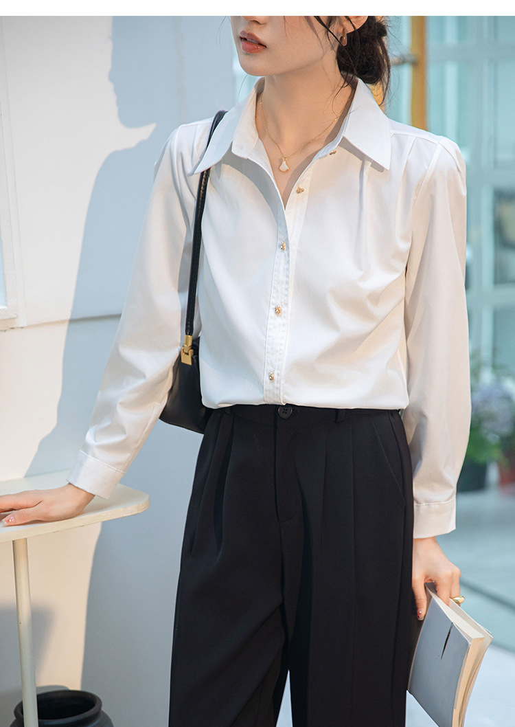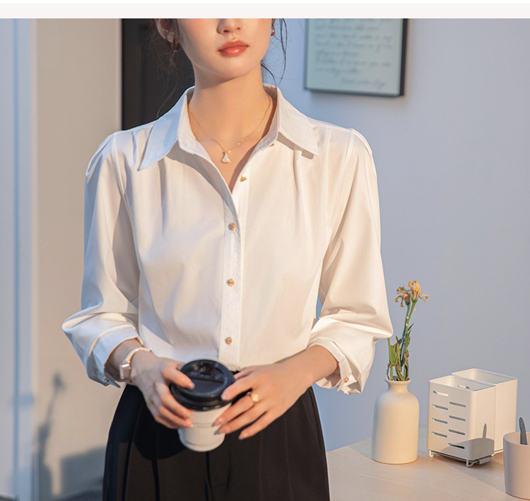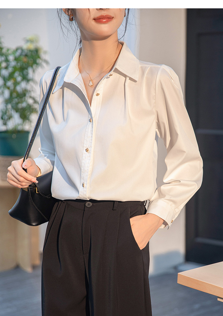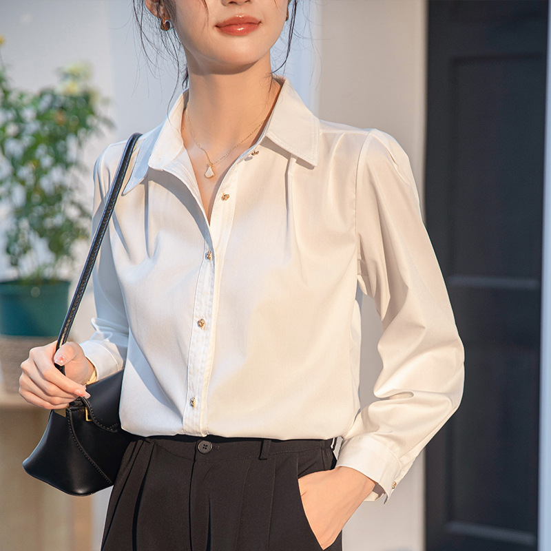 2024 리얼 샷 프랑스 우아한 화이트 셔츠 여성의 가을 새로운 디자인 감각 전문 통근 긴팔 웨스턴 스타일 탑