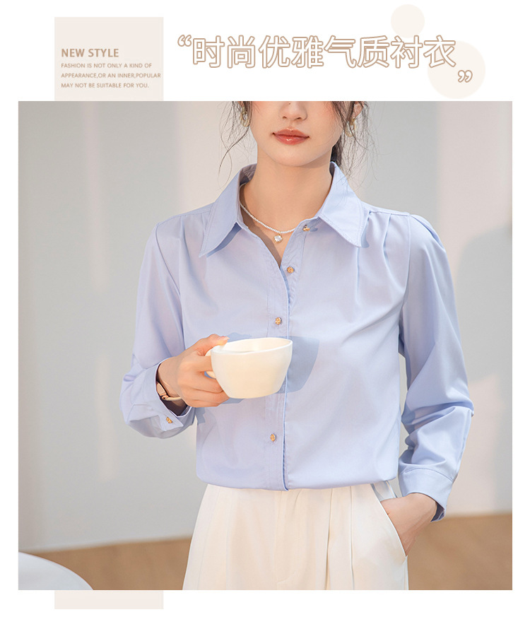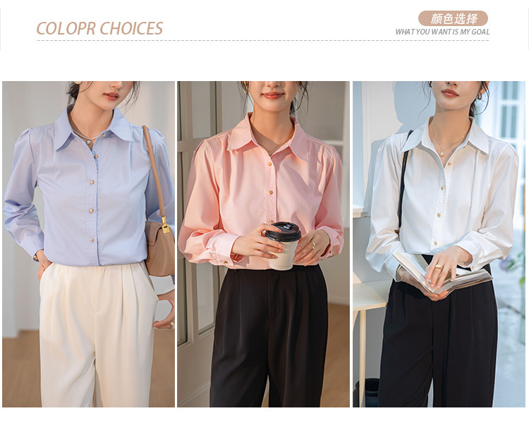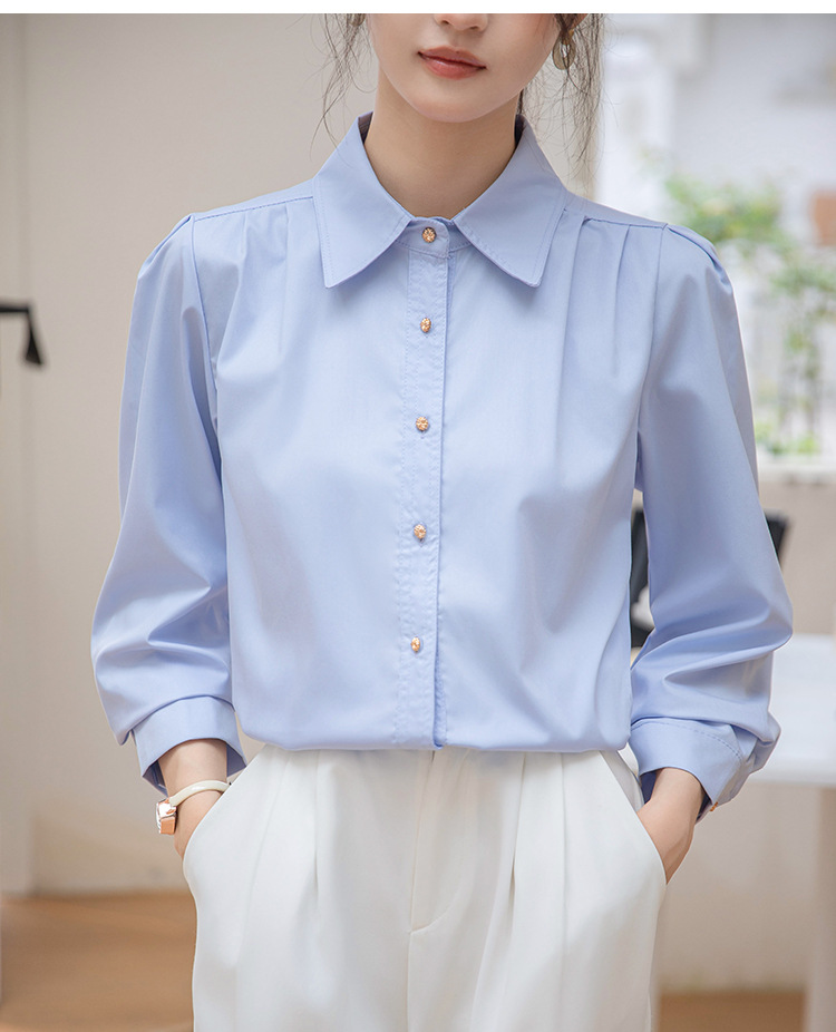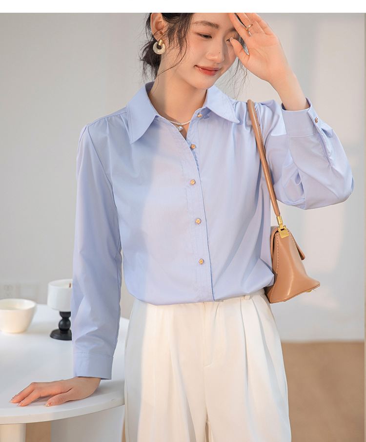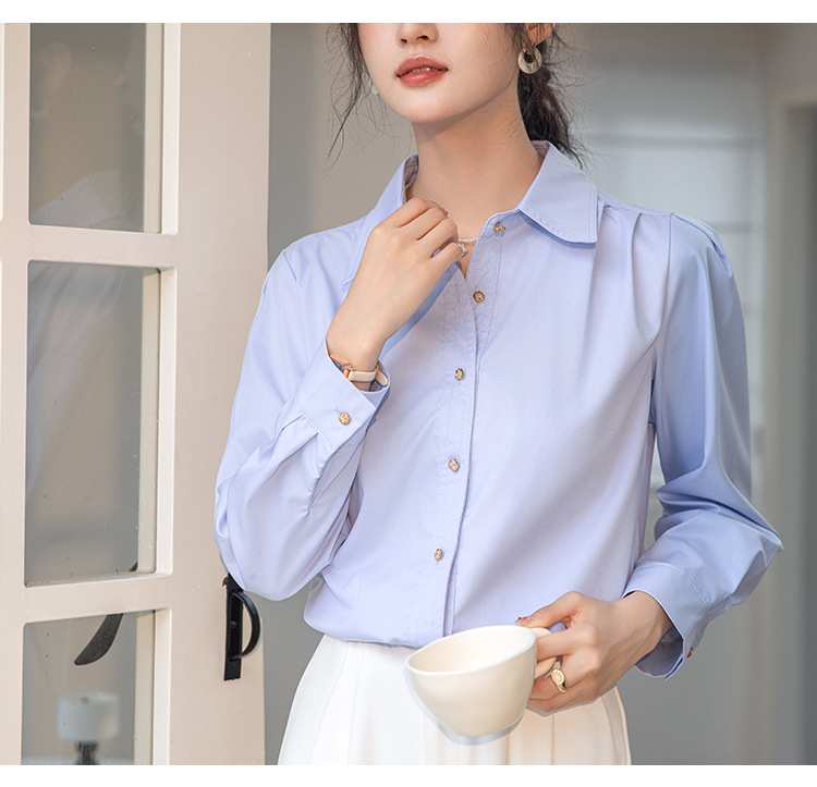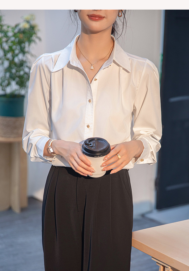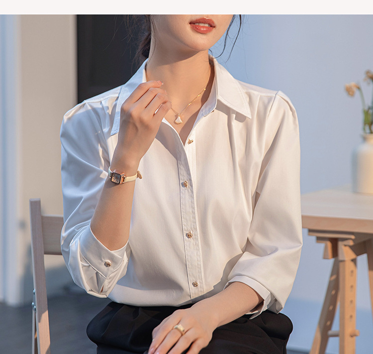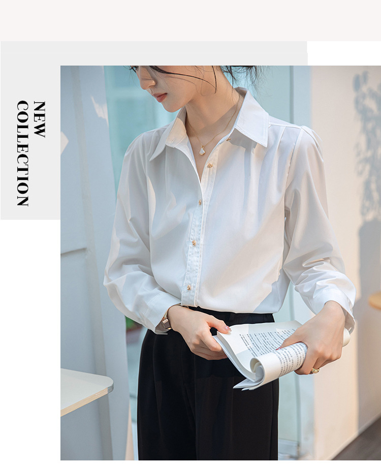 2024 리얼 샷 프랑스 우아한 화이트 셔츠 여성의 가을 새로운 디자인 감각 전문 통근 긴팔 웨스턴 스타일 탑