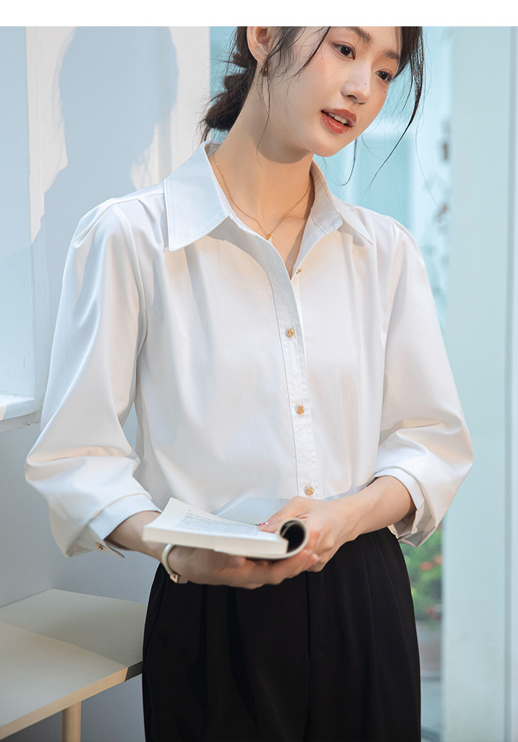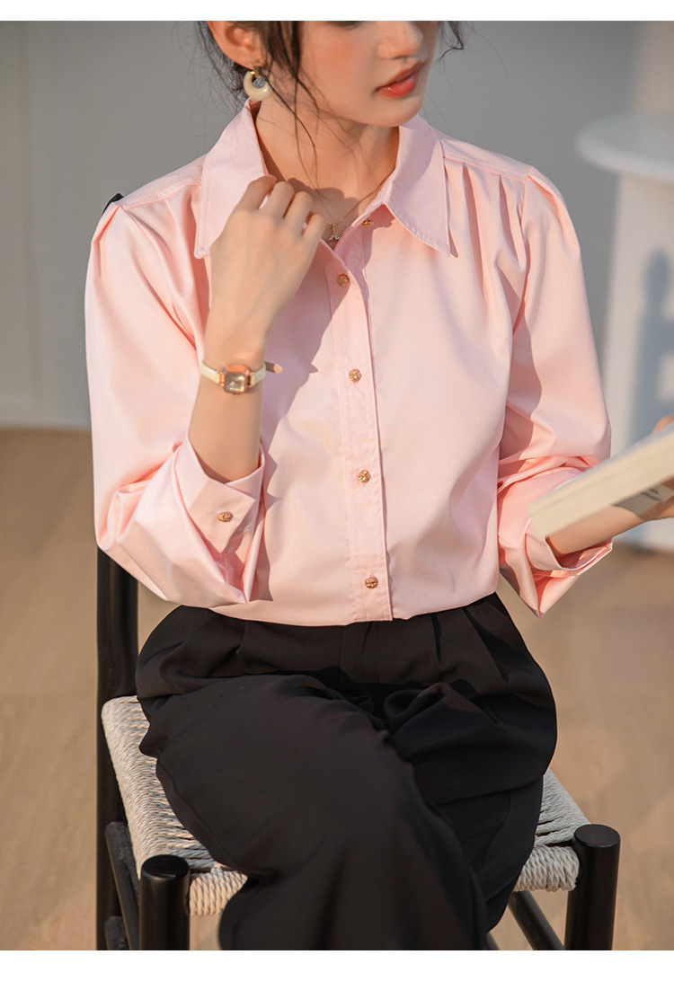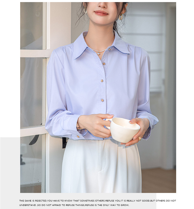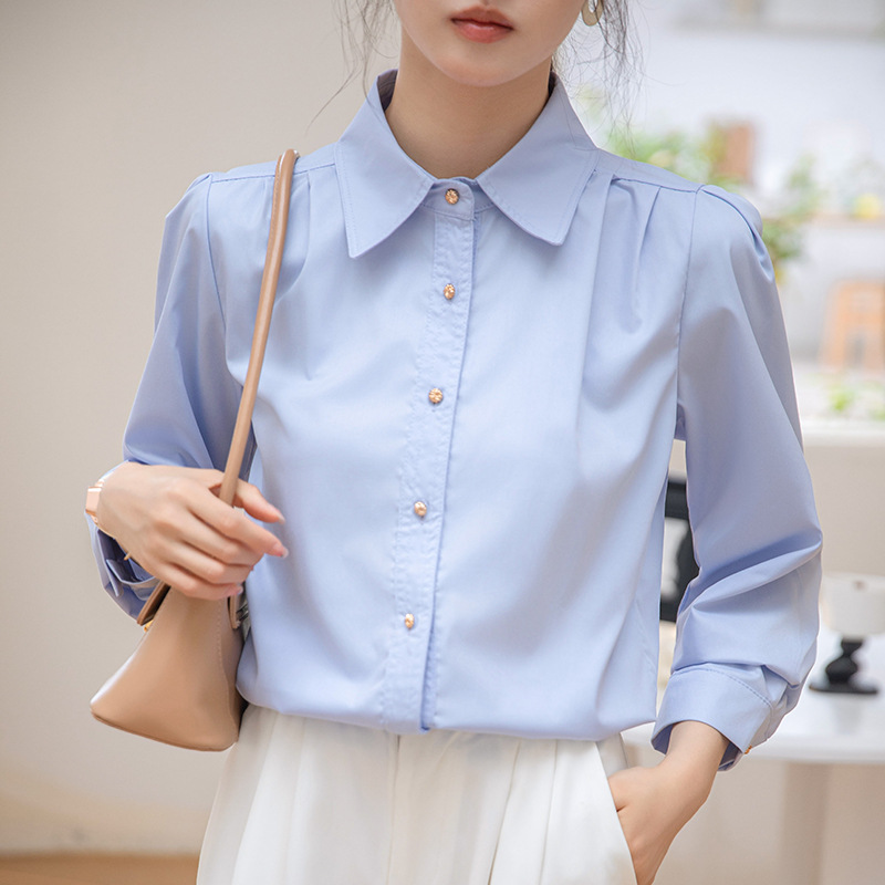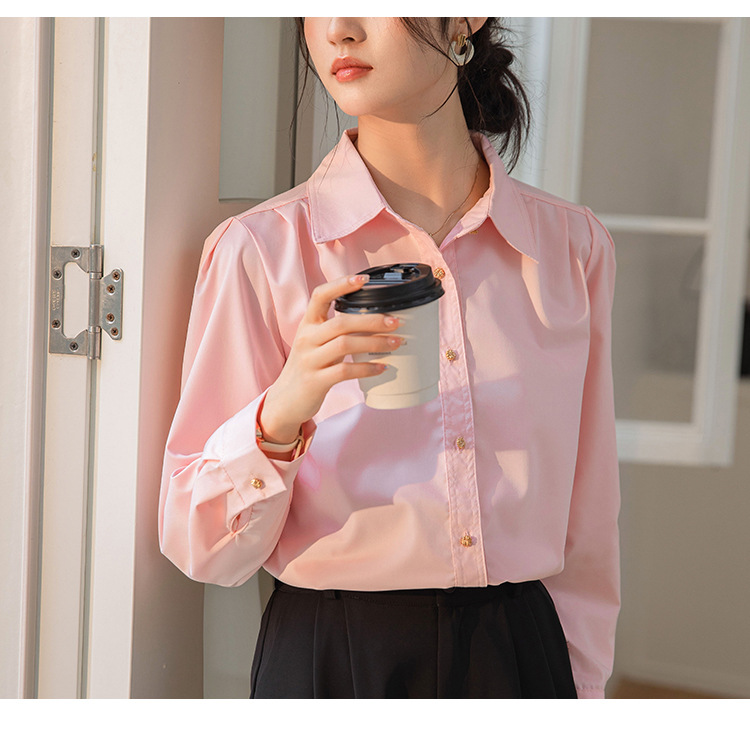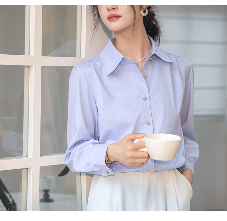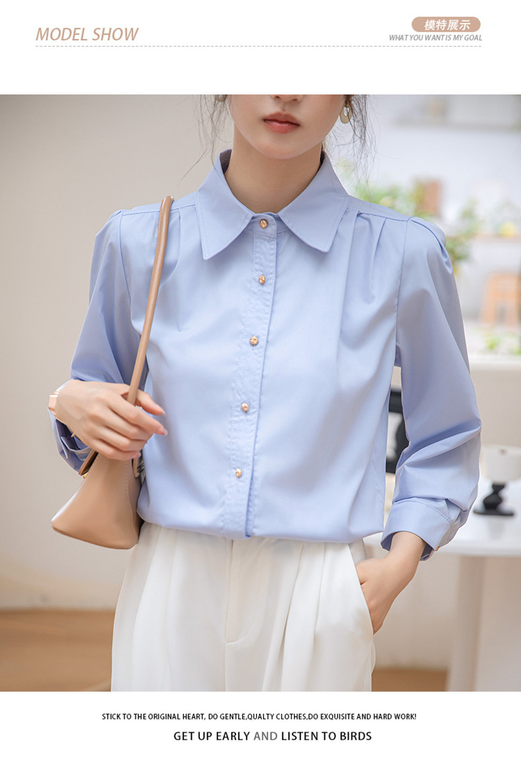 2024 리얼 샷 프랑스 우아한 화이트 셔츠 여성의 가을 새로운 디자인 감각 전문 통근 긴팔 웨스턴 스타일 탑