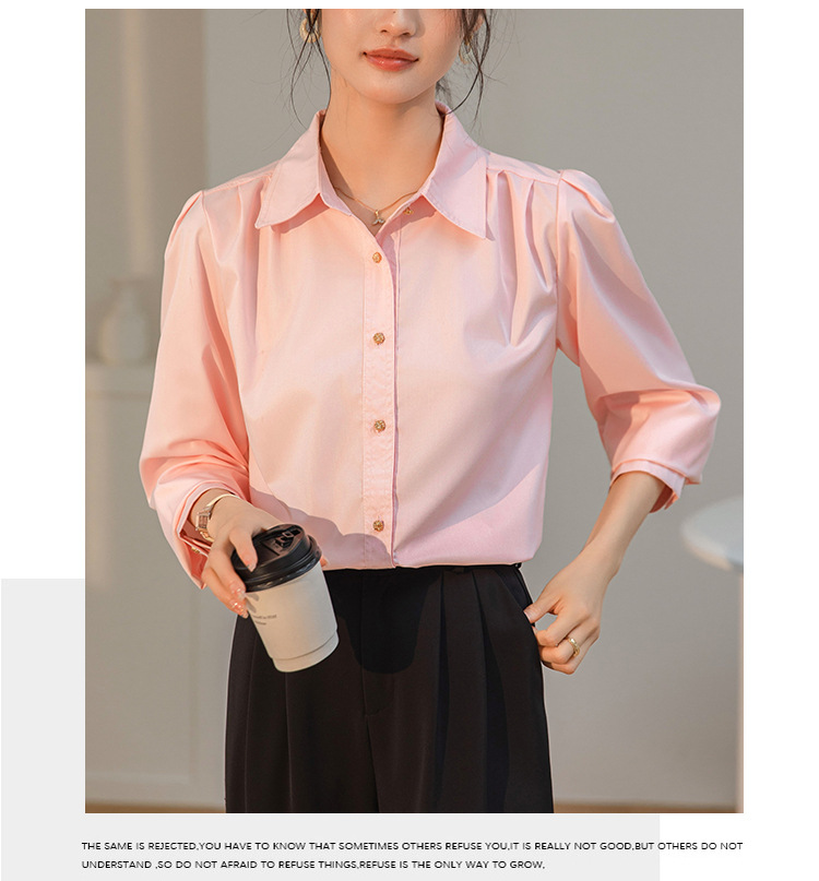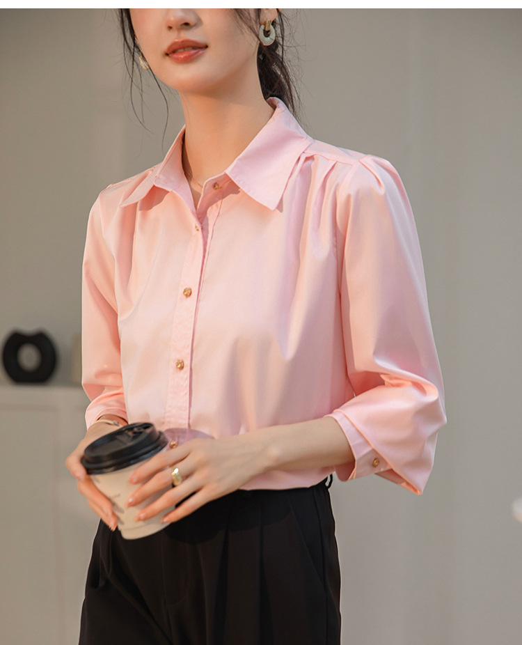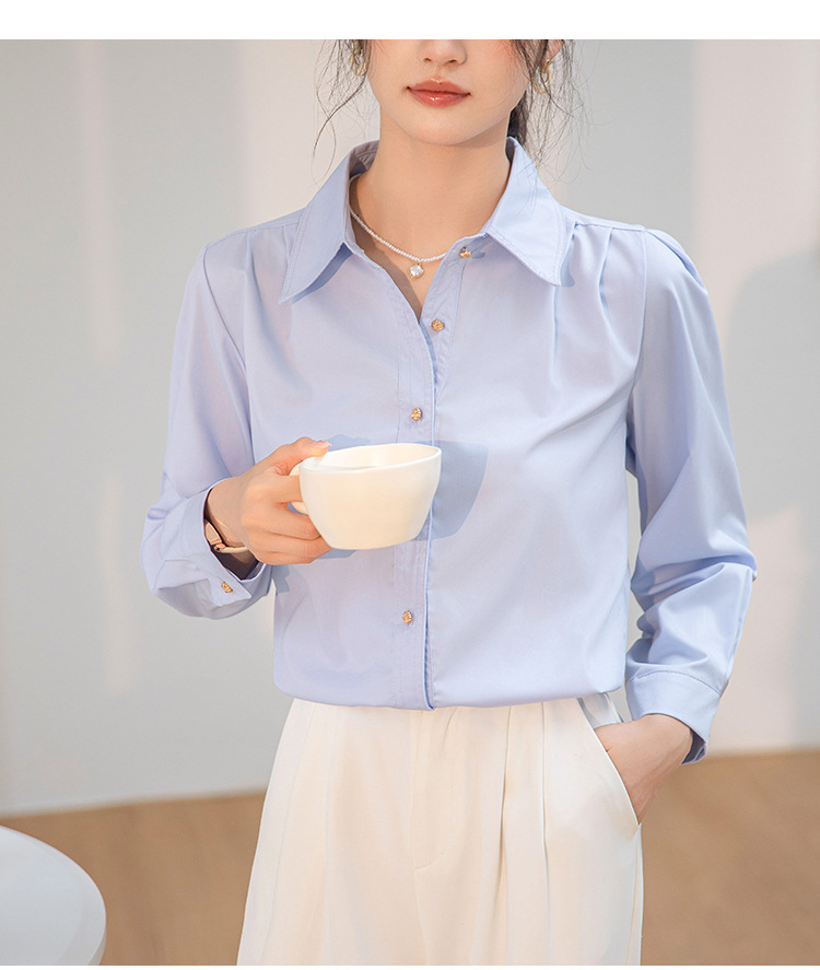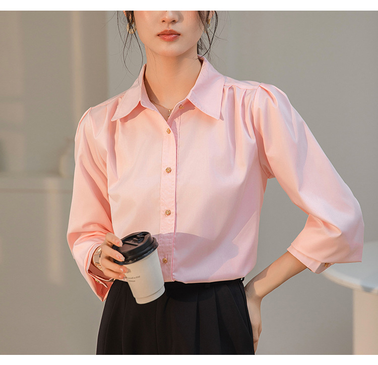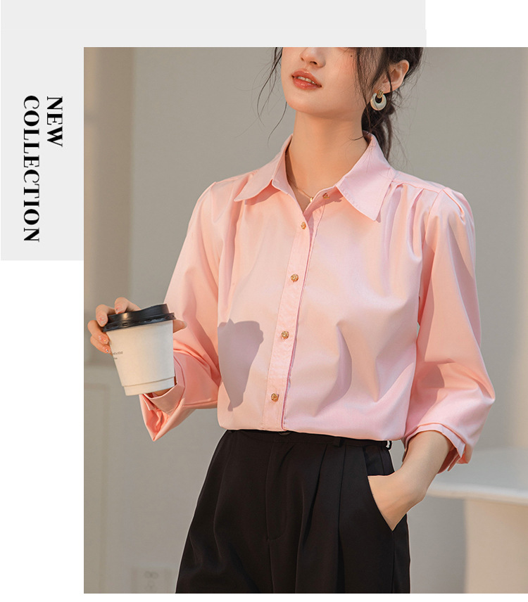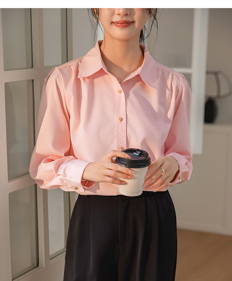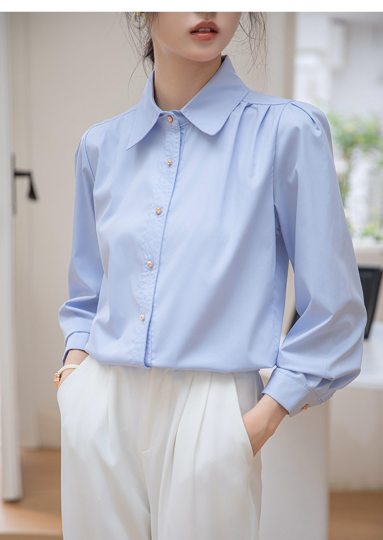 2024 리얼 샷 프랑스 우아한 화이트 셔츠 여성의 가을 새로운 디자인 감각 전문 통근 긴팔 웨스턴 스타일 탑
