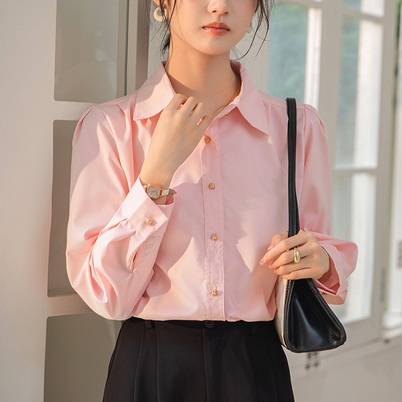 2024 리얼 샷 프랑스 우아한 화이트 셔츠 여성의 가을 새로운 디자인 감각 전문 통근 긴팔 웨스턴 스타일 탑스토어 가기