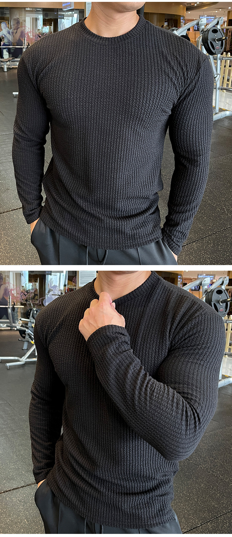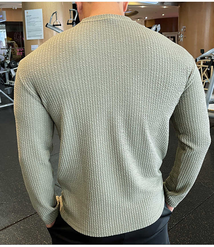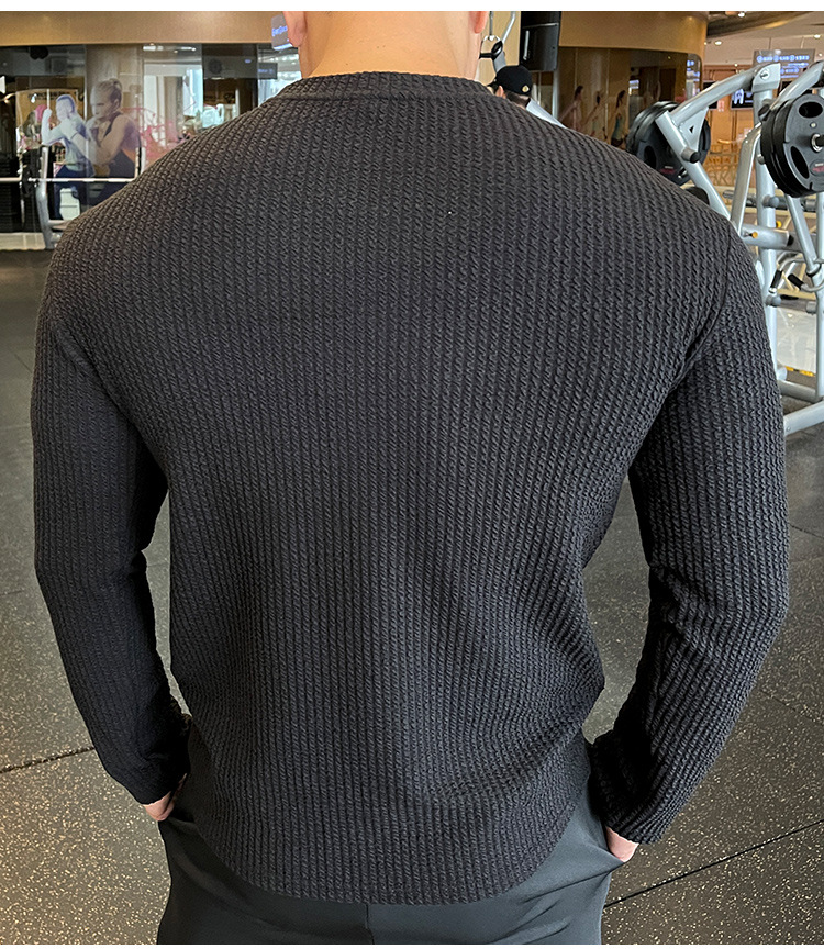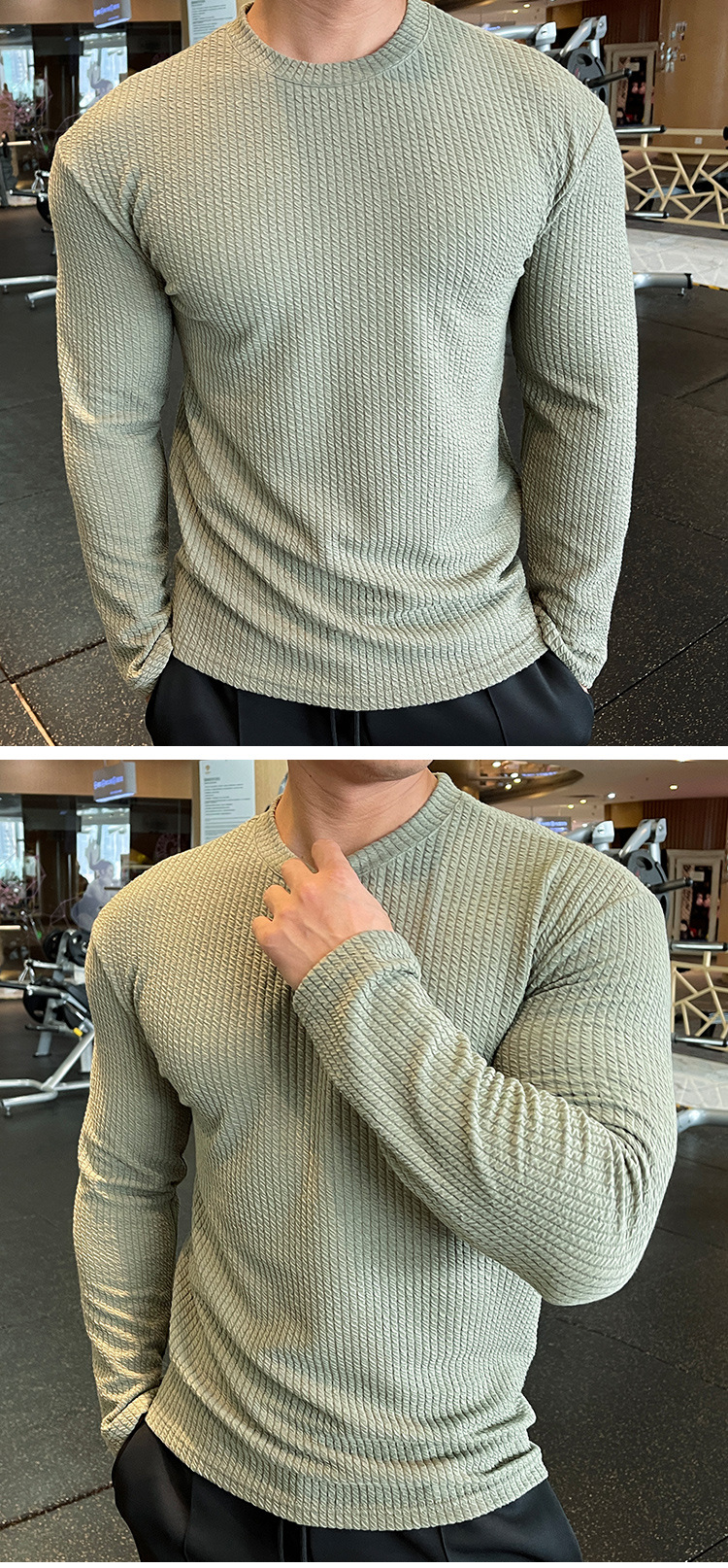 와플 자카드 티셔츠 남성용 주름 질감 슬림 핏 긴팔 소프트 왁스 통기성 스포츠 탑 니트 베이스 셔츠