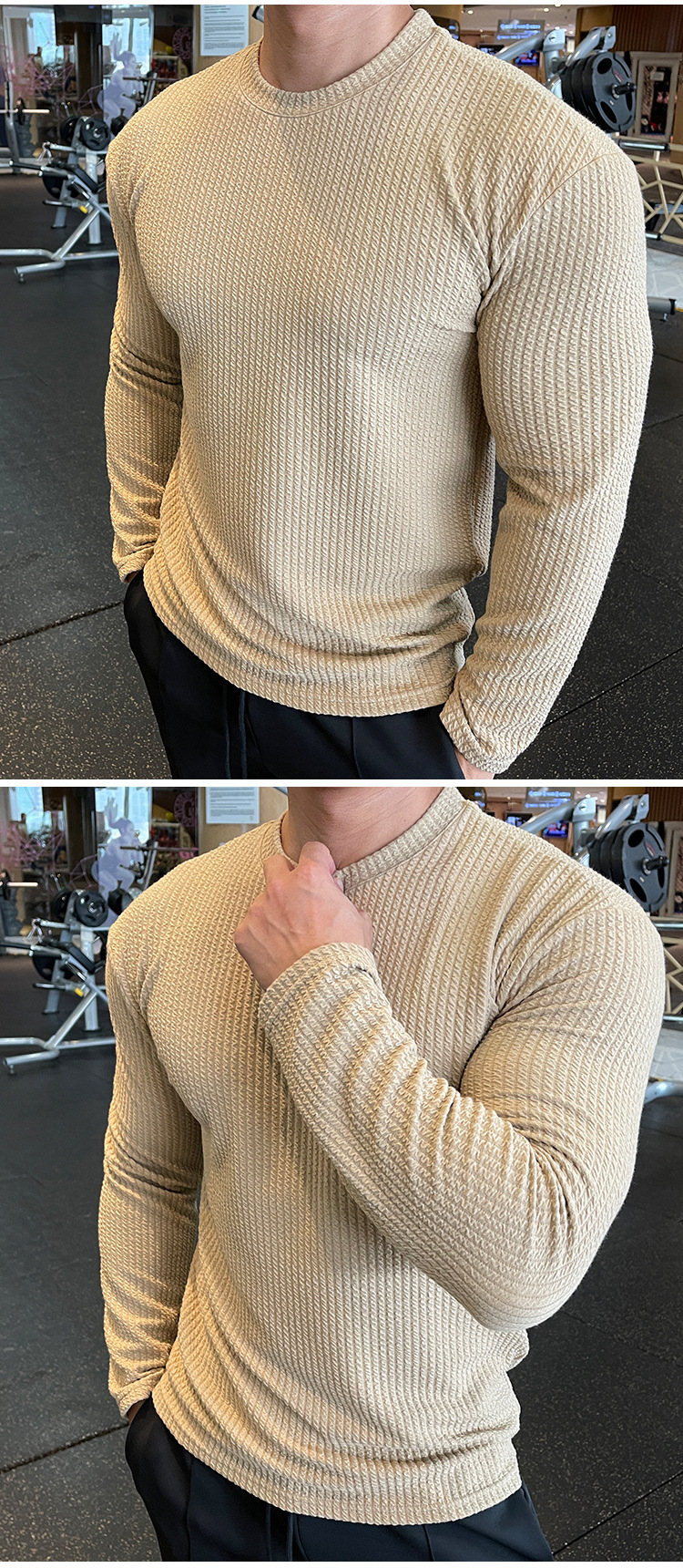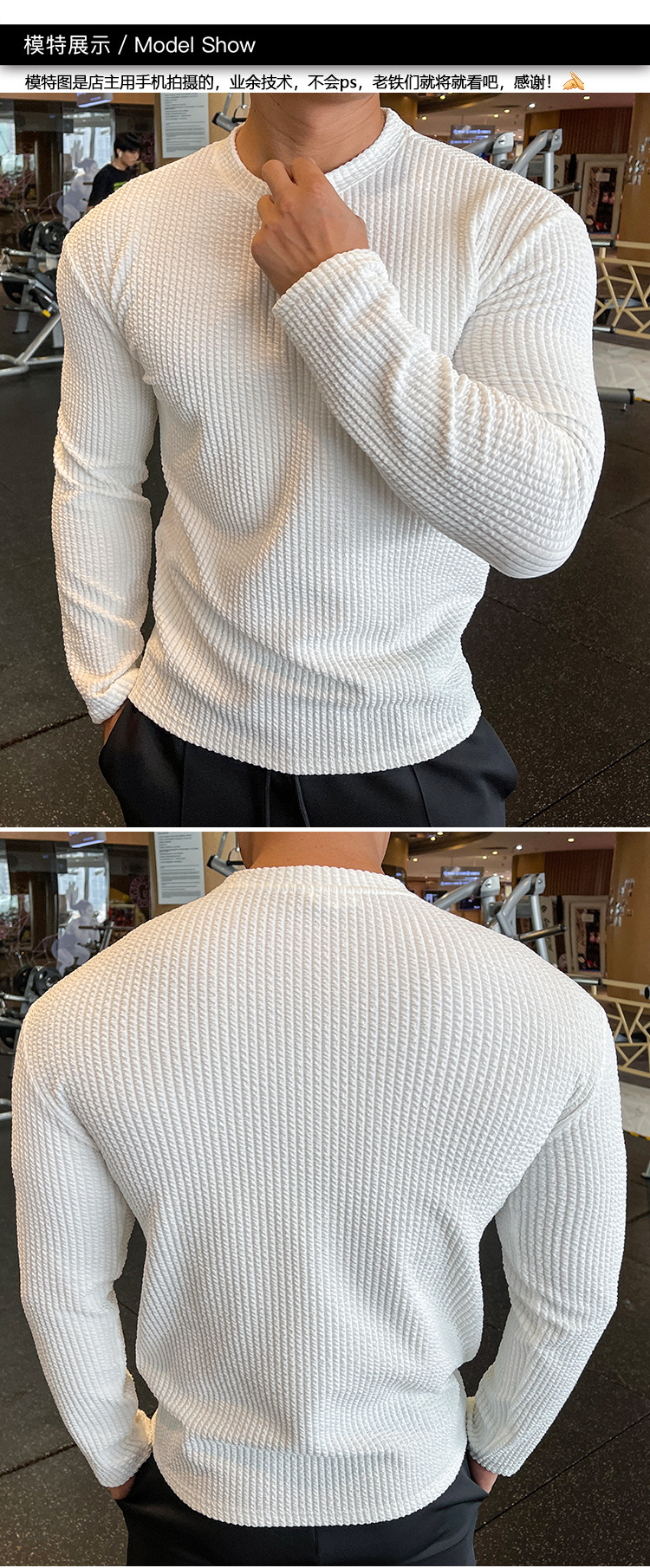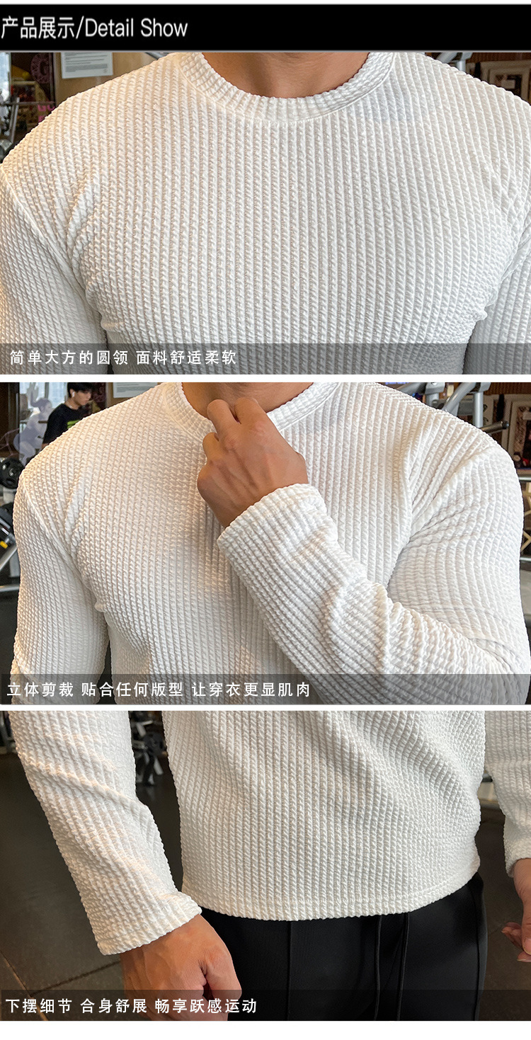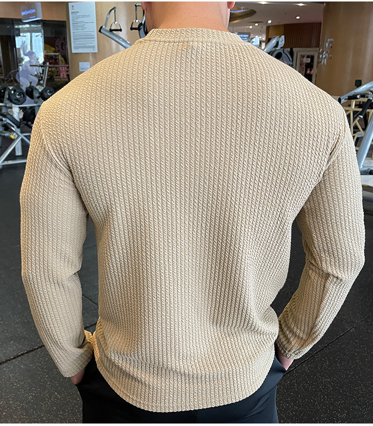 와플 자카드 티셔츠 남성용 주름 질감 슬림 핏 긴팔 소프트 왁스 통기성 스포츠 탑 니트 베이스 셔츠