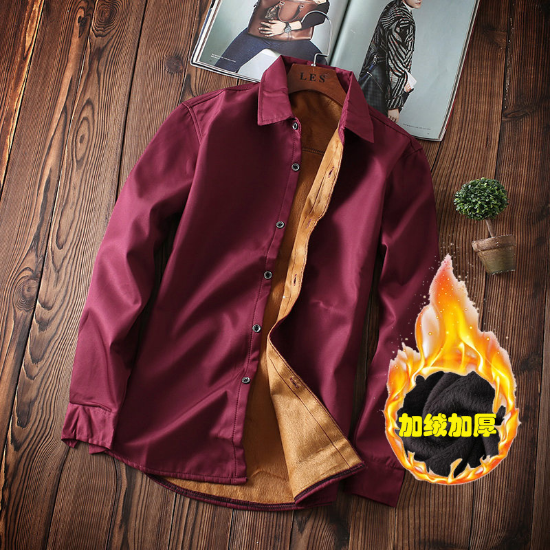 겨울 남자 긴팔 따뜻한 기모 셔츠 남자 두꺼운 슬림 핏 퓨어 화이트 비즈니스 남자 전문 셔츠스토어 가기