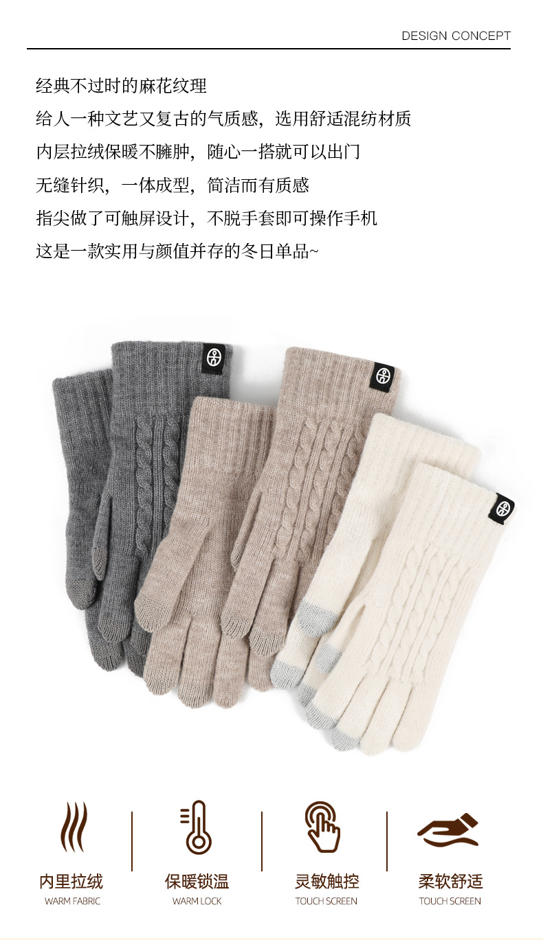 여성용 겨울 장갑, 남성용 트위스트 니트 장갑, 방한 및 따뜻한 터치 스크린 사이클링 장갑, 여성용 벨벳 두꺼운 장갑스토어 가기