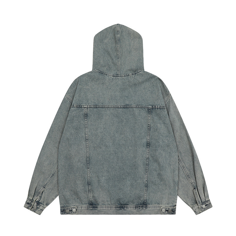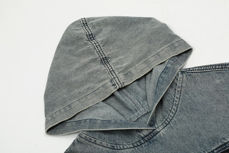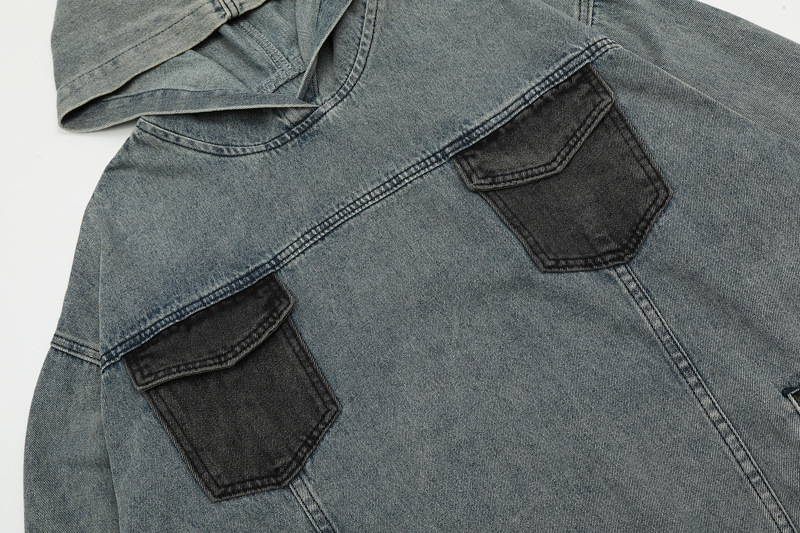 아메리칸 스타일 레트로 오래 된 컬러 패치 워크 포켓 후드 데님 스웨트 셔츠 남성용 트렌디 브랜드 루즈 커플 재킷스토어 가기