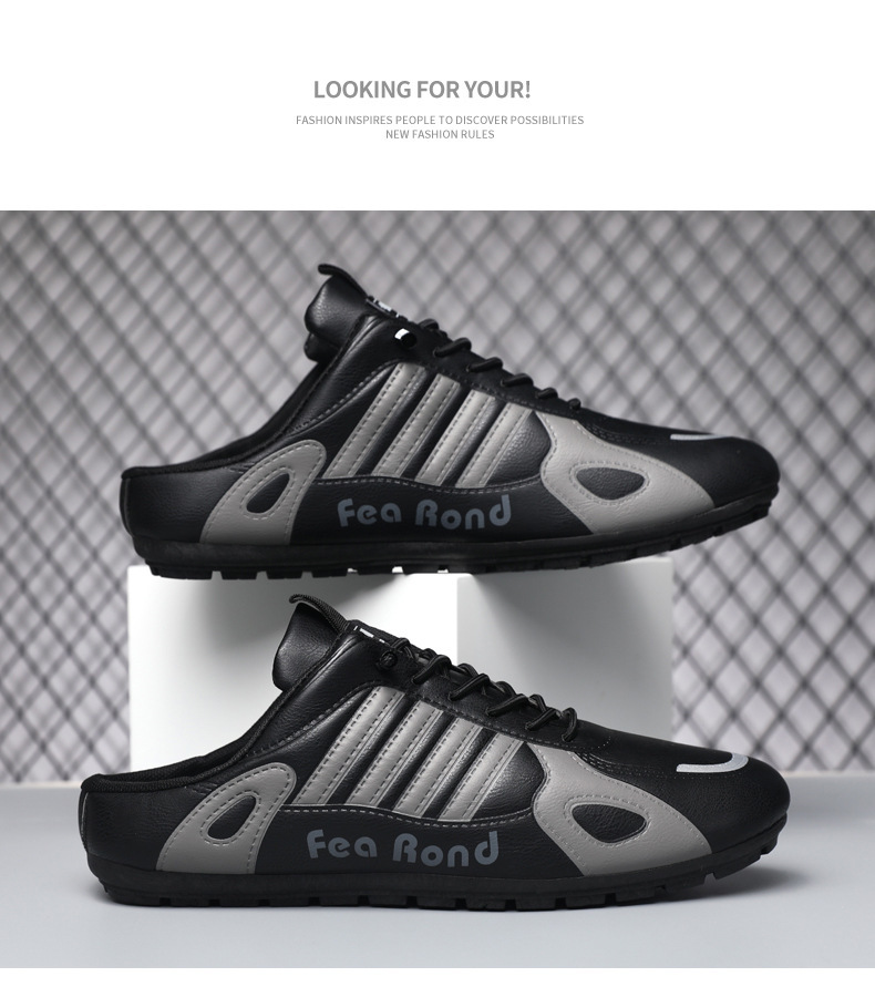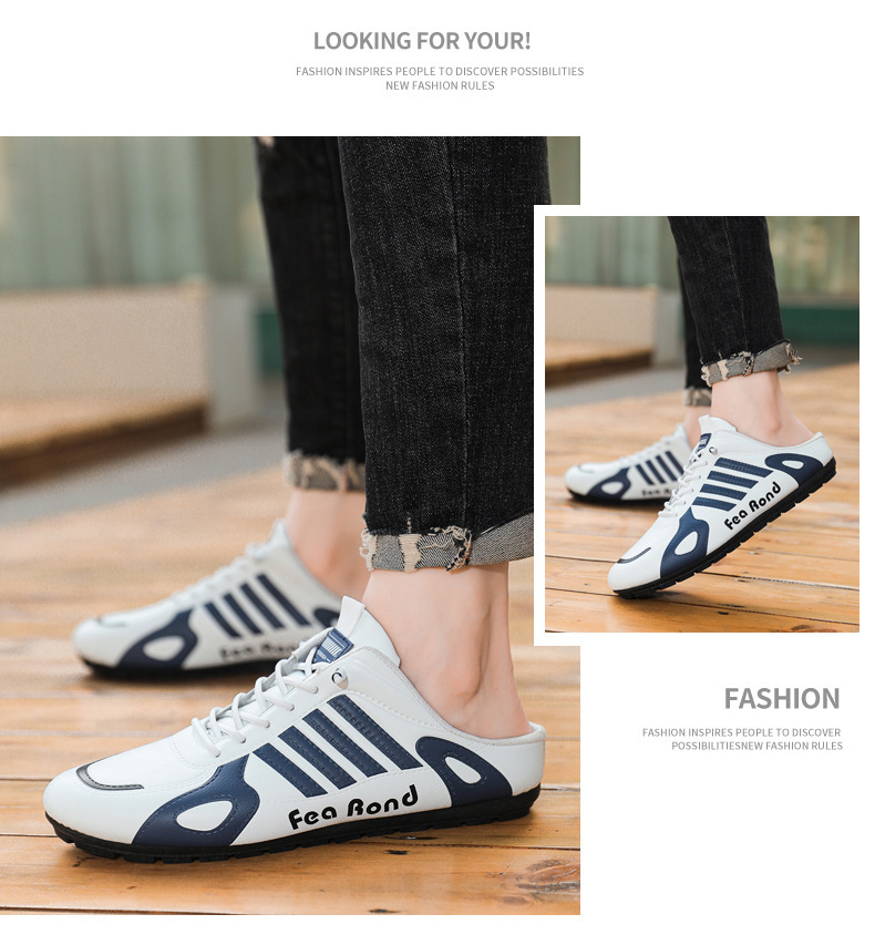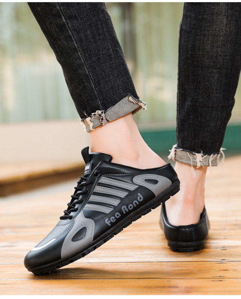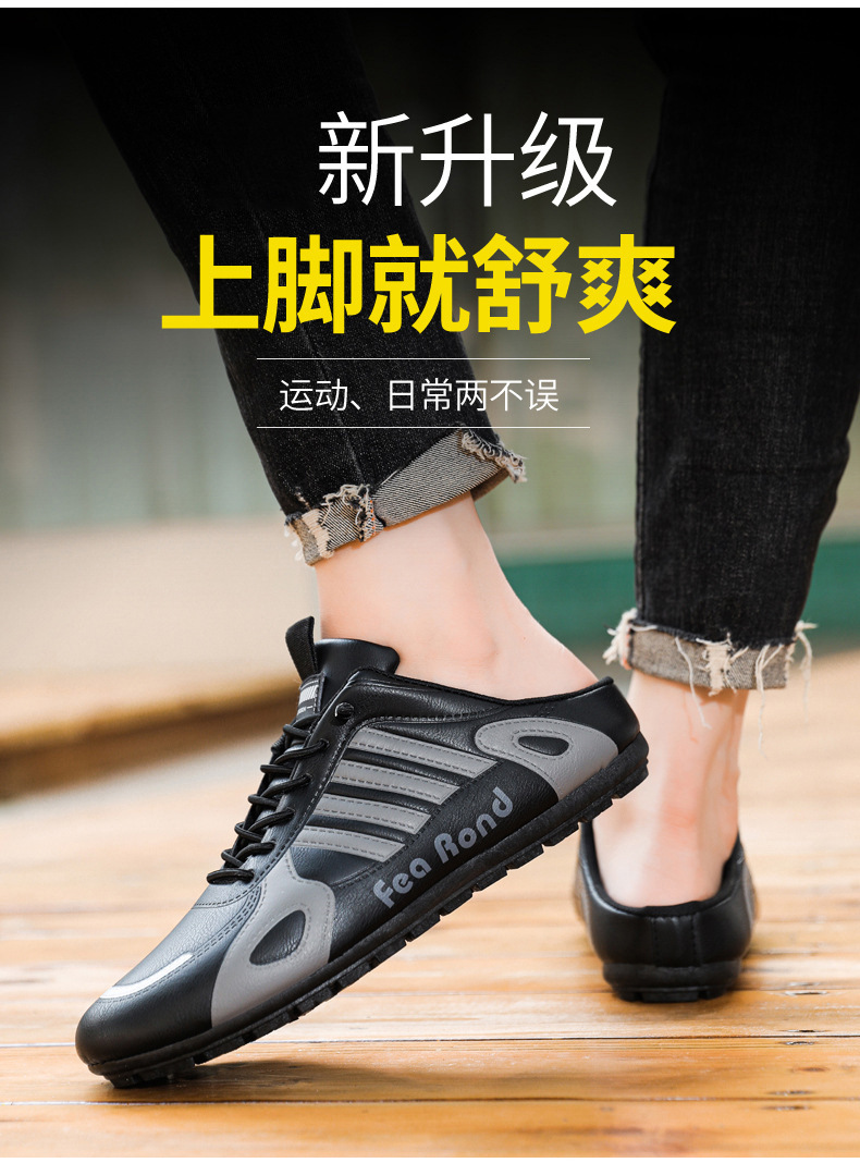 남성용 신발 여름 새로운 가죽 소프트 하단 편안한 통기성 캐주얼 신발 십대 트렌디 한 슬립 온 하프 슬리퍼 도매스토어 가기