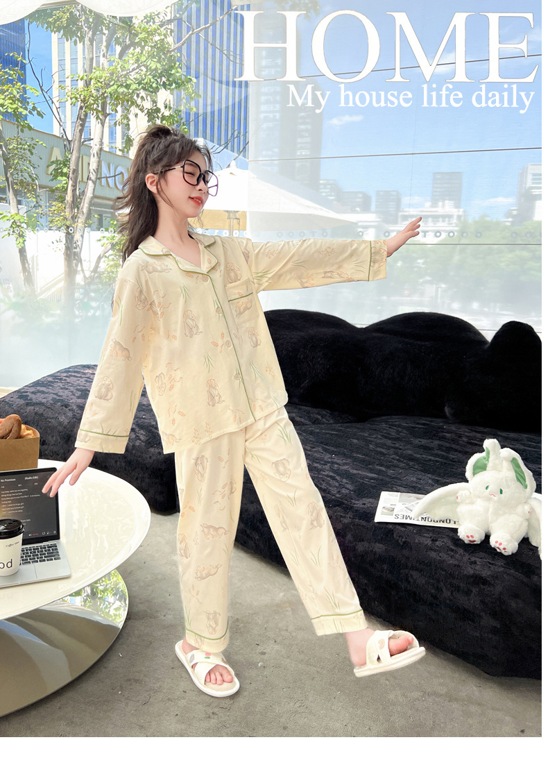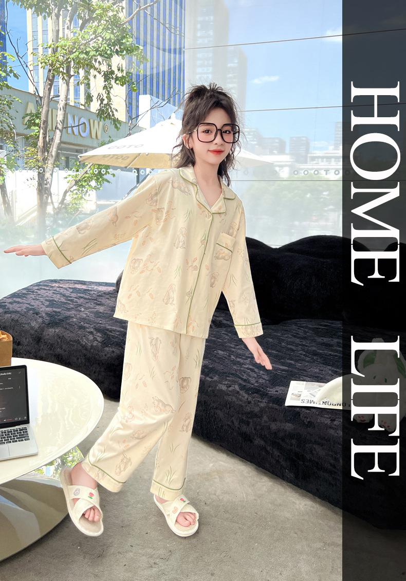 봄과 가을 소녀 잠옷 가을 어린이 2025 새로운 큰 어린이 순수 면화 긴팔 유행 소녀 가정 의류 세트