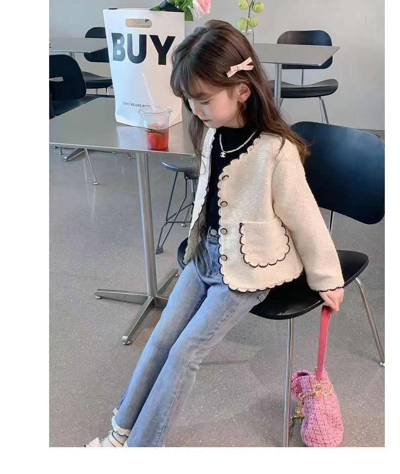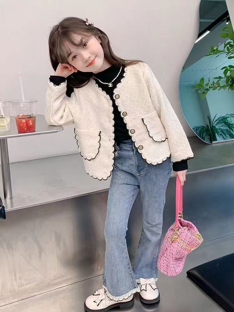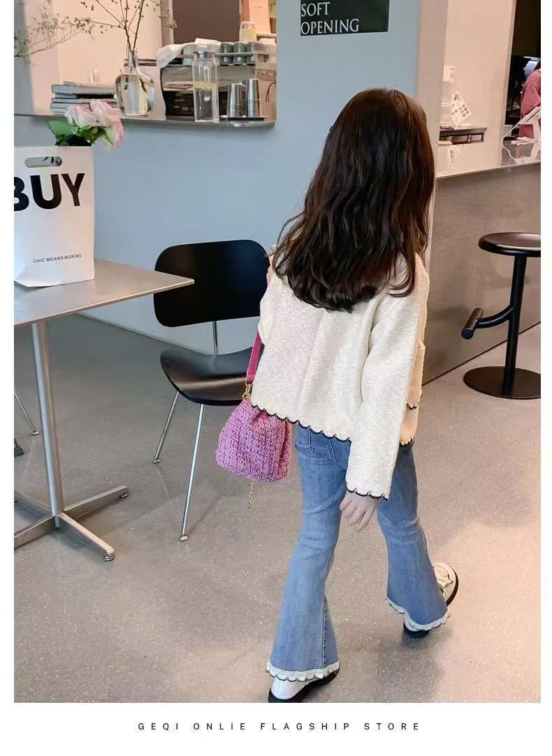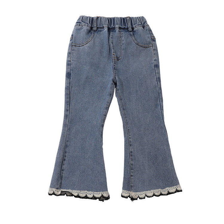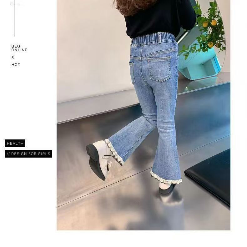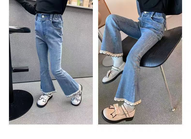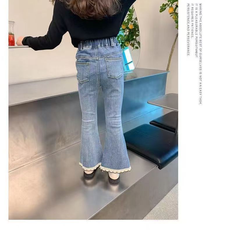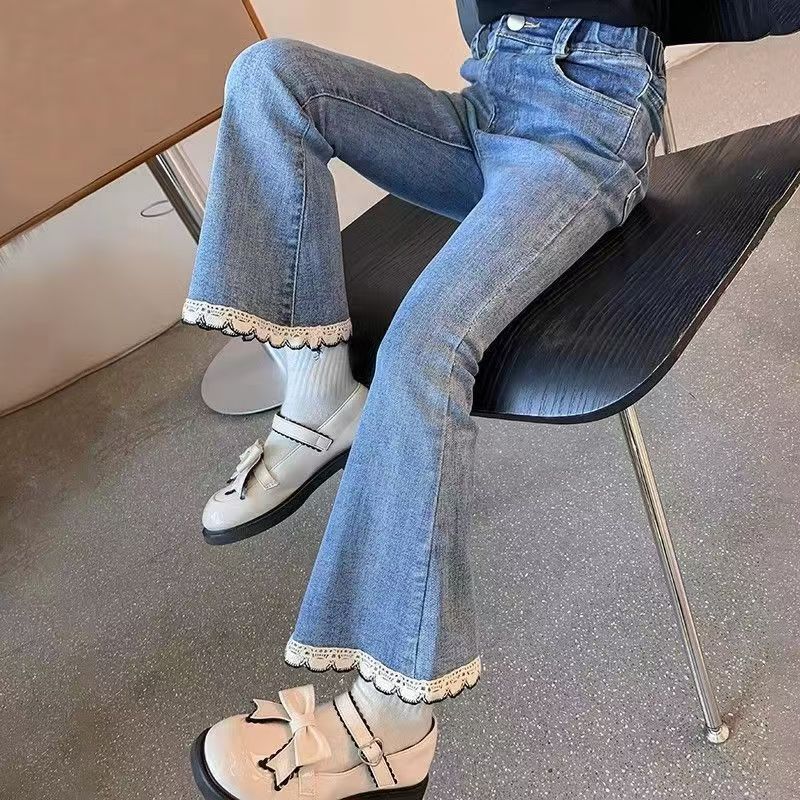 소녀 레이스 데님 꽃 바지 봄과 가을 새로운 2024 한국 스타일 여성 아기 서양식 슬림 모양 캐주얼 스탠튼 바지스토어 가기