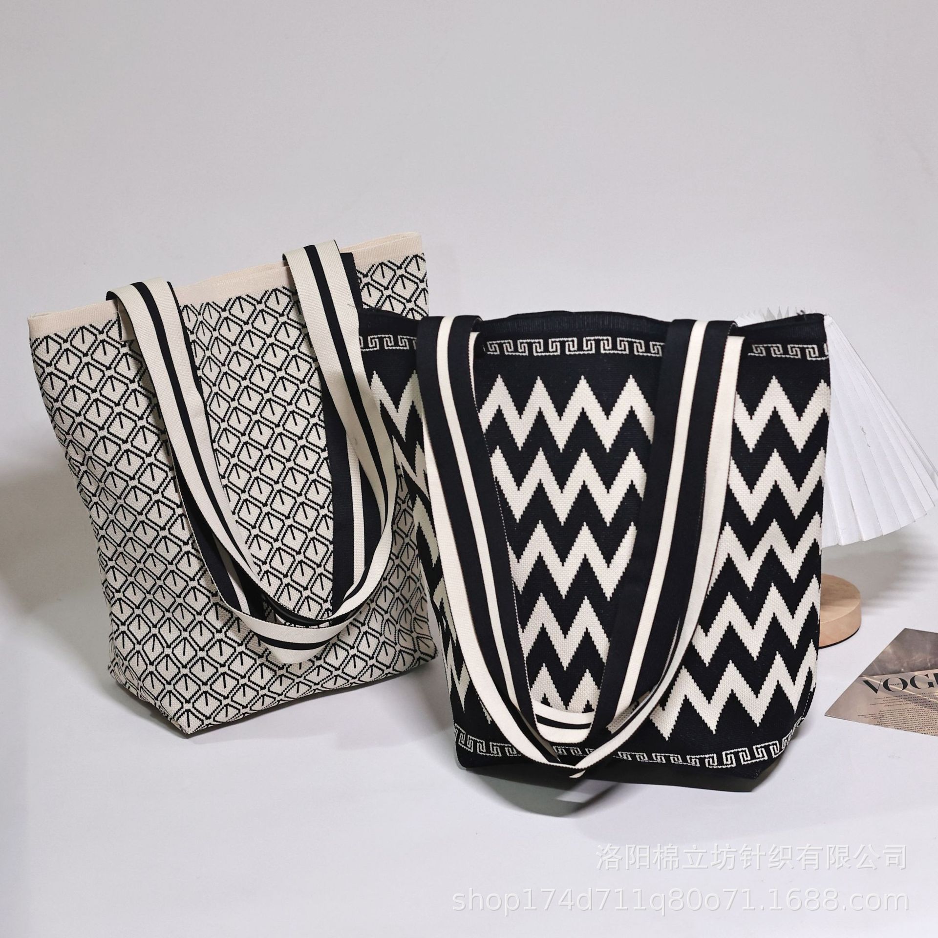 국경 간 패션 틈새 디자인 니트 숄더백 대용량 가방 통근 버킷 가방 짠 여성 가방 도매스토어 가기