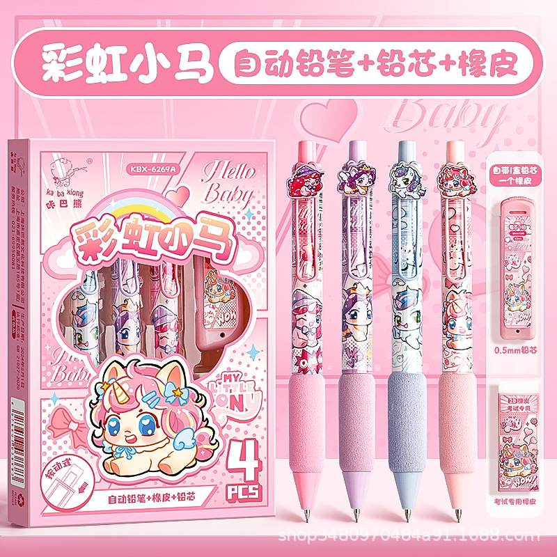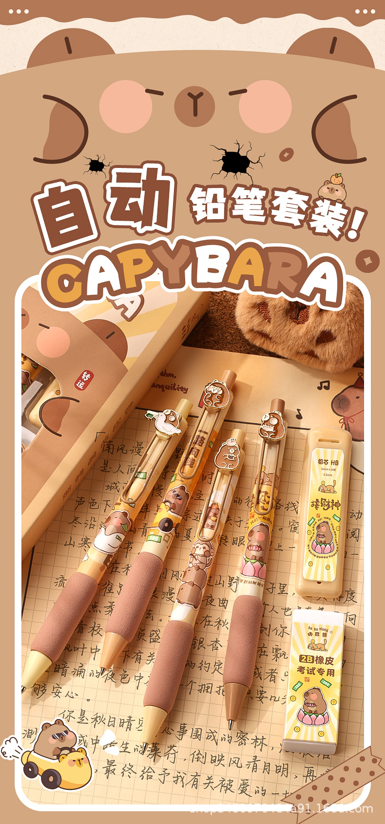 카바 곰 패치 펜 국가 조수 꽃 프레스 기계 연필 세트 학생 0.5 교체 가능한 스폰지 칼집