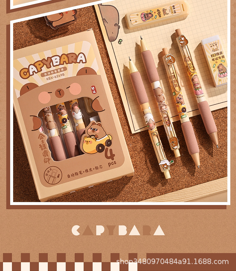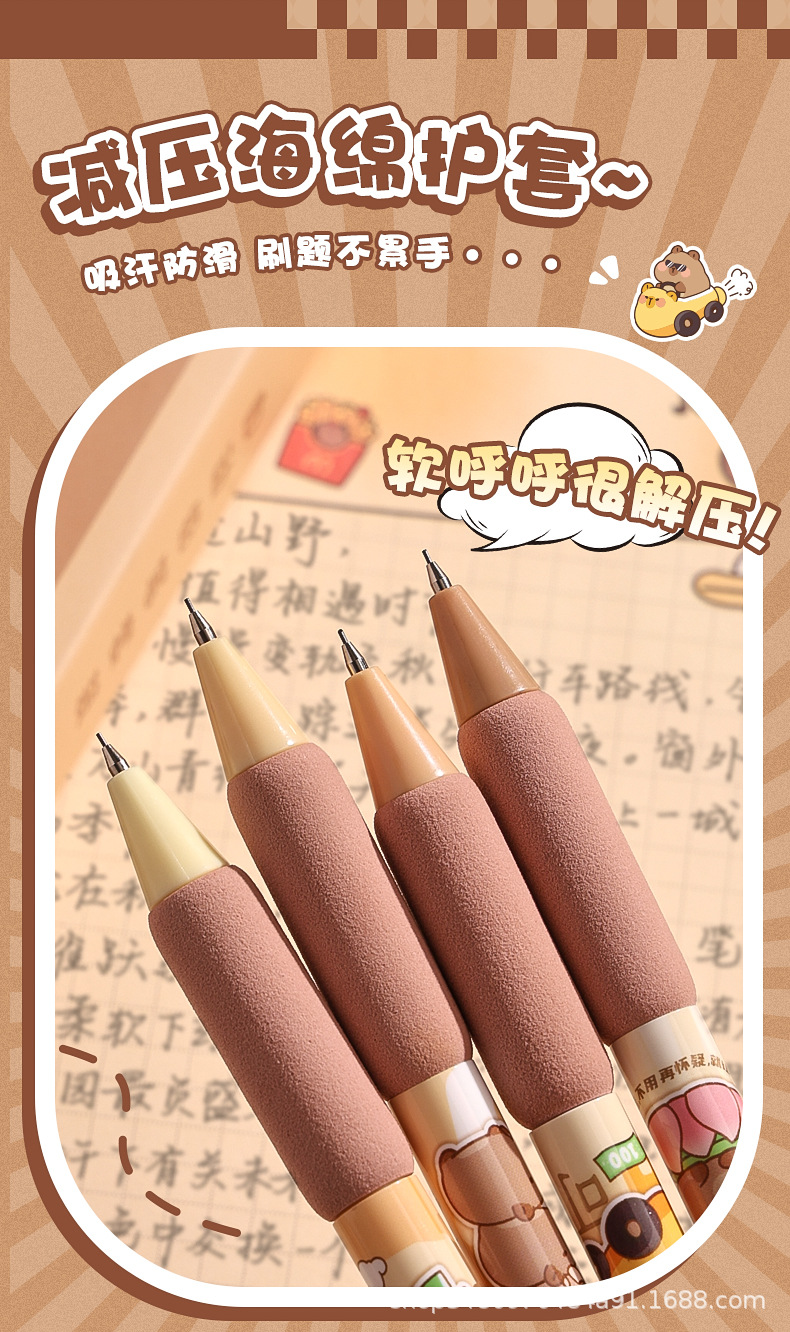 카바 곰 패치 펜 국가 조수 꽃 프레스 기계 연필 세트 학생 0.5 교체 가능한 스폰지 칼집스토어 가기