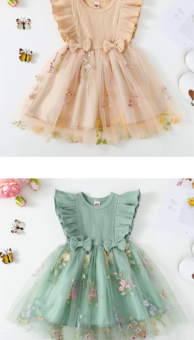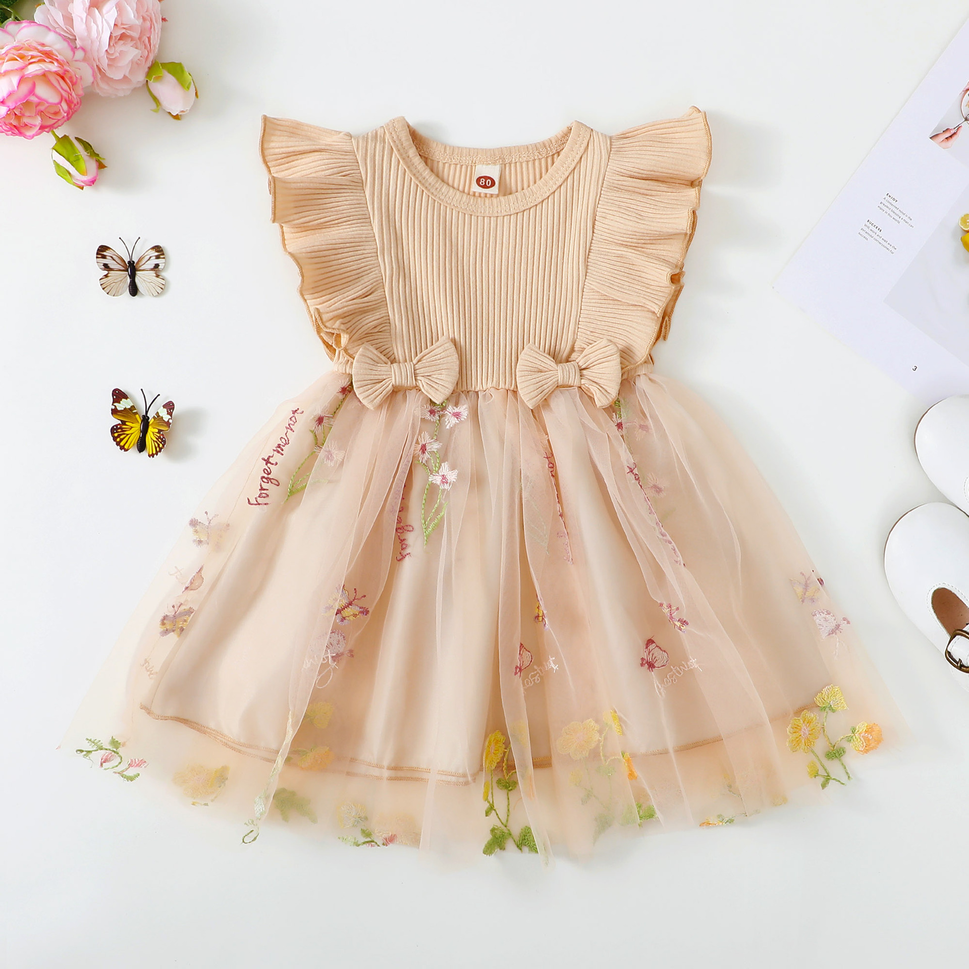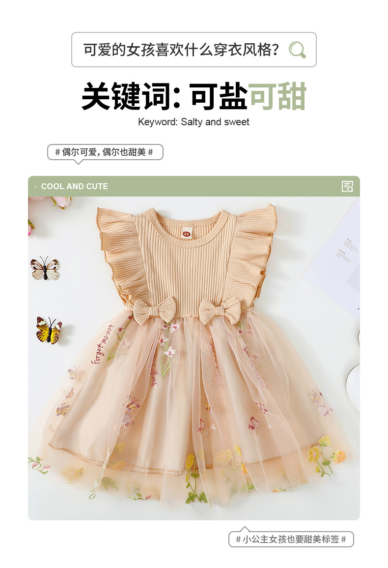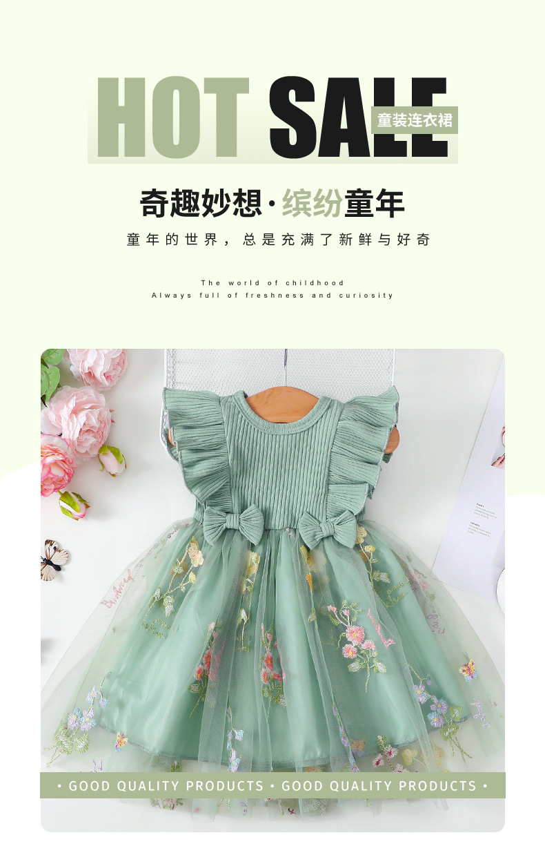 소녀의 세련된 민소매 조끼 스티칭 조끼 공주 원피스 아기 소녀의 푹신한 인쇄 된 어린이 원피스스토어 가기