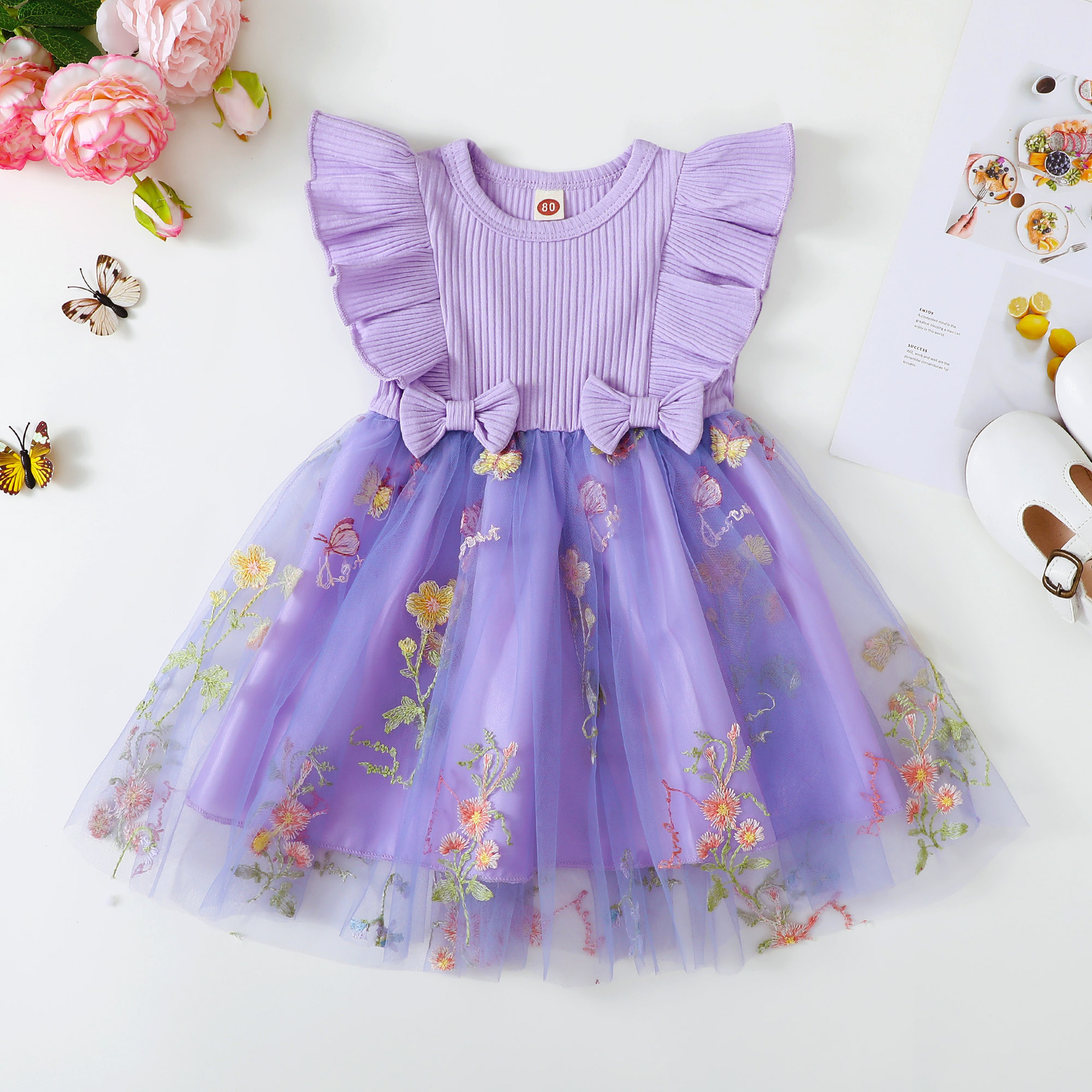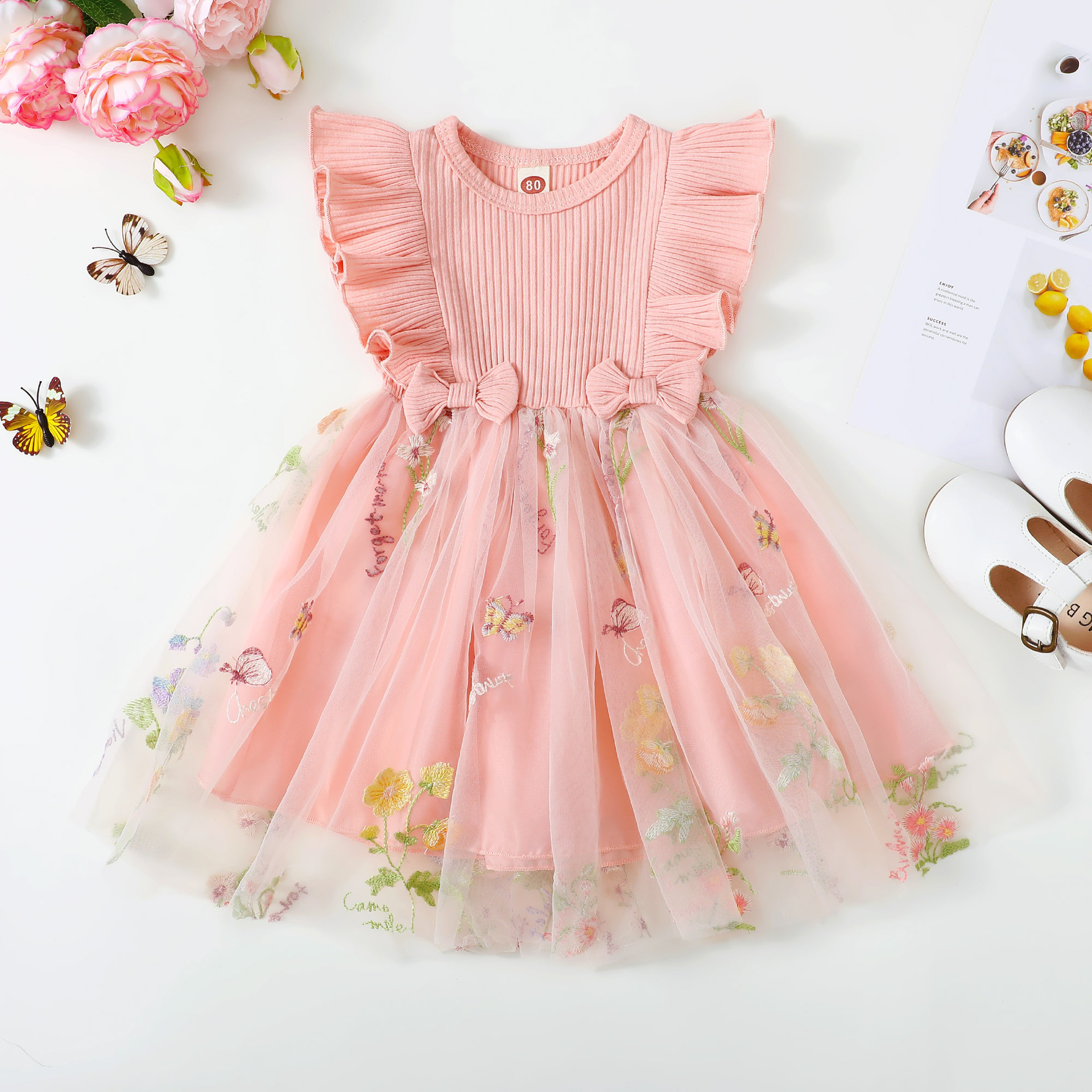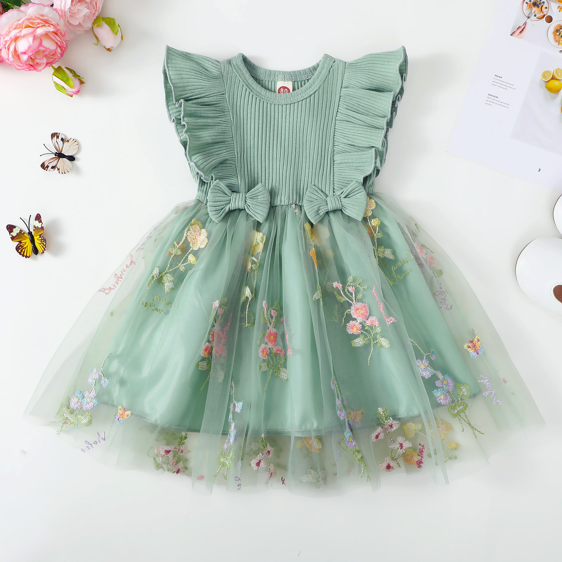 소녀의 세련된 민소매 조끼 스티칭 조끼 공주 원피스 아기 소녀의 푹신한 인쇄 된 어린이 원피스스토어 가기