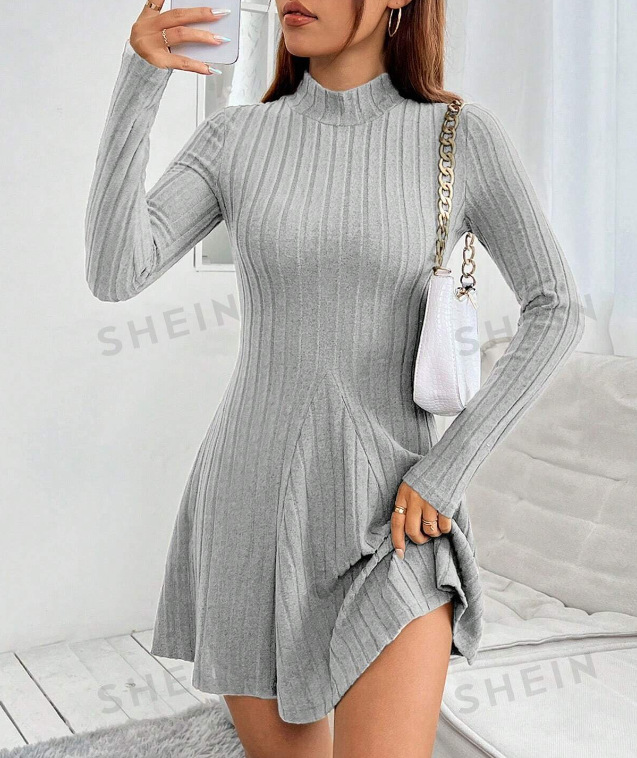2024 새로운 가을과 겨울 국경 아마존 유럽과 미국 패션 슬림 단색 긴 소매 니트 원피스 여성스토어 가기