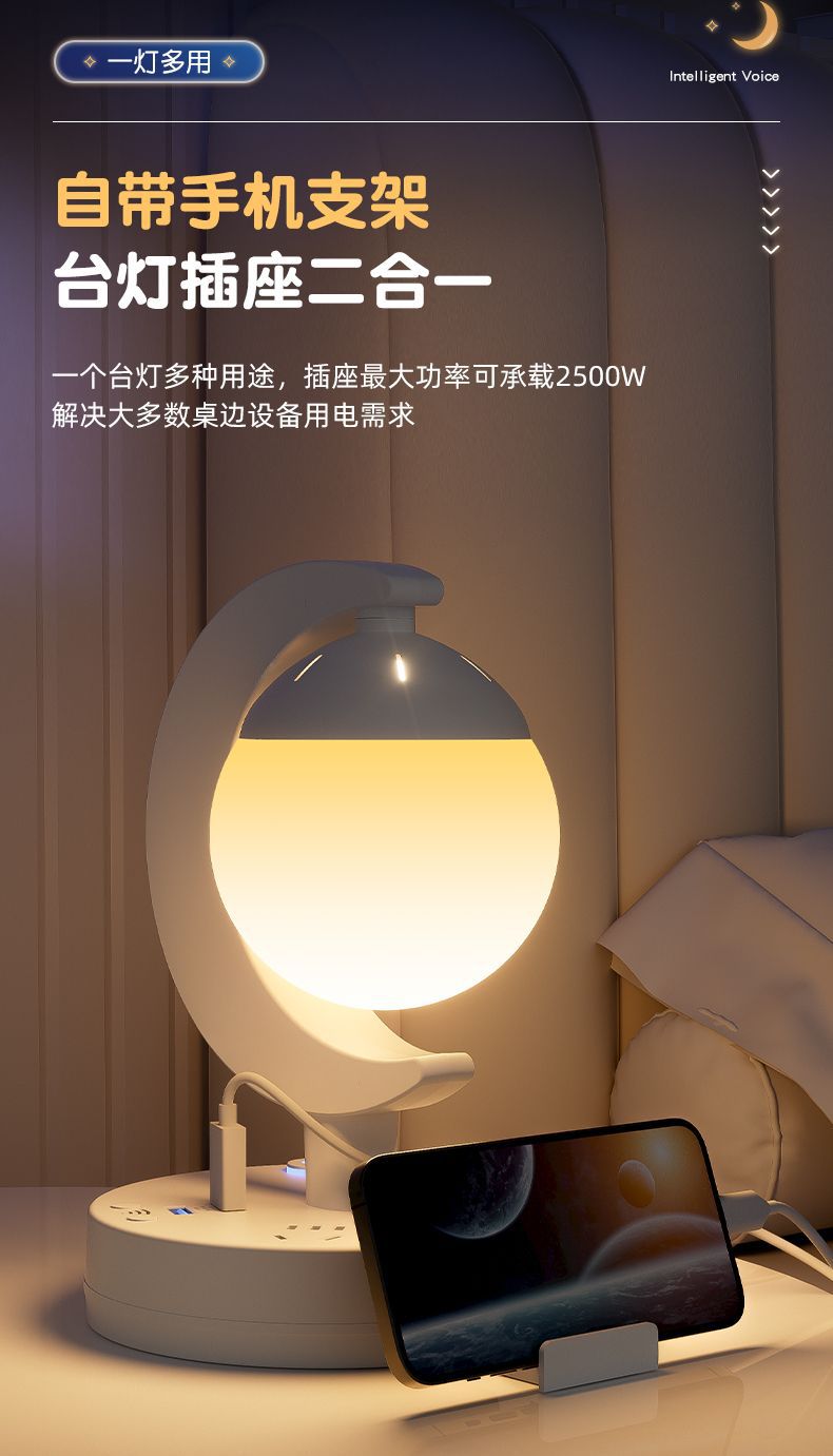 음성 음성 제어 야간 조명 지능형 원격 제어 플러그인 다기능 눈 보호 수면 침실 침대 옆 램프 소켓 책상 램프