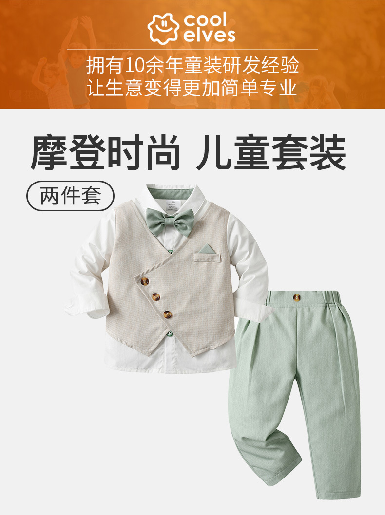 一件代发欧美小西装两件套儿童衣服宝宝春秋款假马甲长袖男童套装