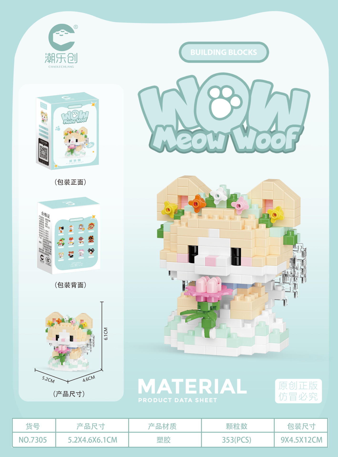 새로운 조수 르 추앙 마이크로 입자 야옹 왕 다지 인형 어린이 장난감 건물 블록 강아지 고양이 장식품 생일 선물