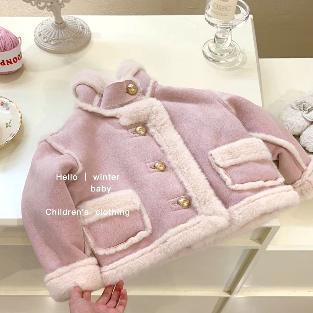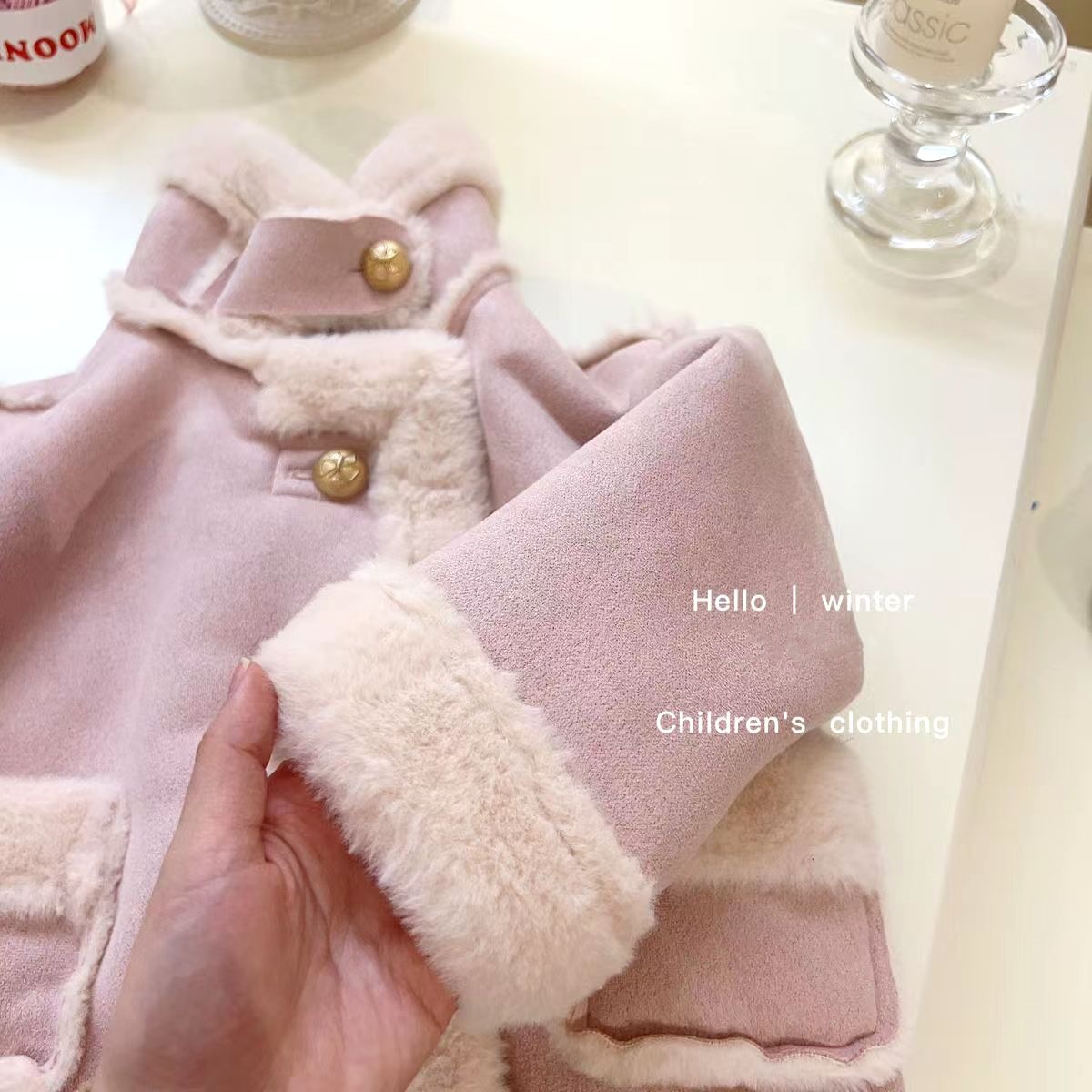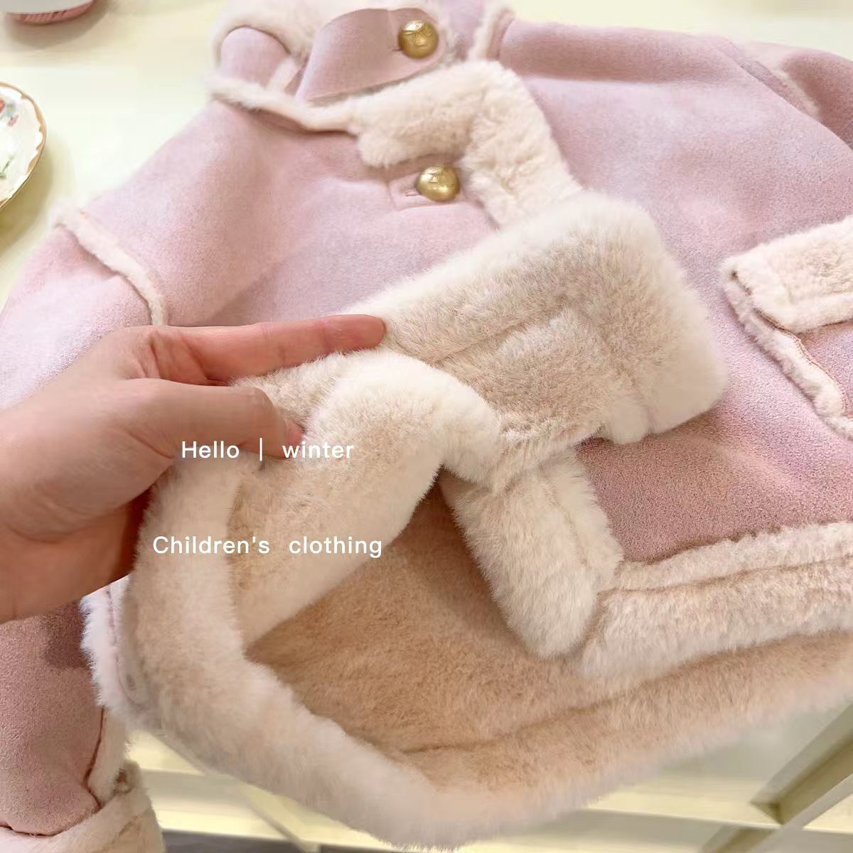 여자 코트 가을, 겨울 의류 2025 새로운 벨벳 두꺼운 어린이 공주 탑 유행 아기 겨울 아동 의류스토어 가기