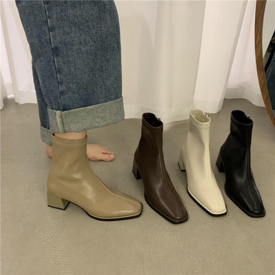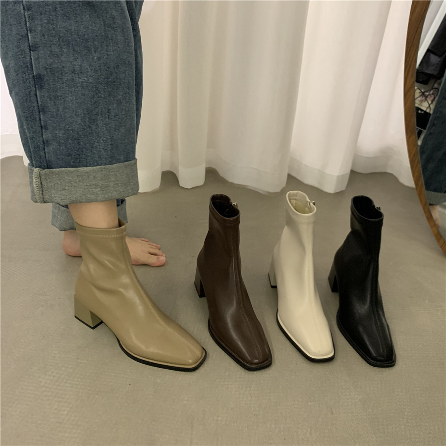 고급 하이힐 슈즈 화이트 마틴 발목 부츠 프랑스 작은 발목 부츠 가을 여름 기모 새로운 스키니 부츠 여성용 부츠스토어 가기
