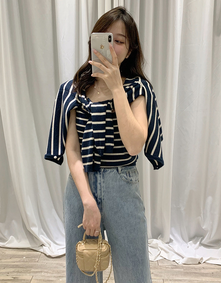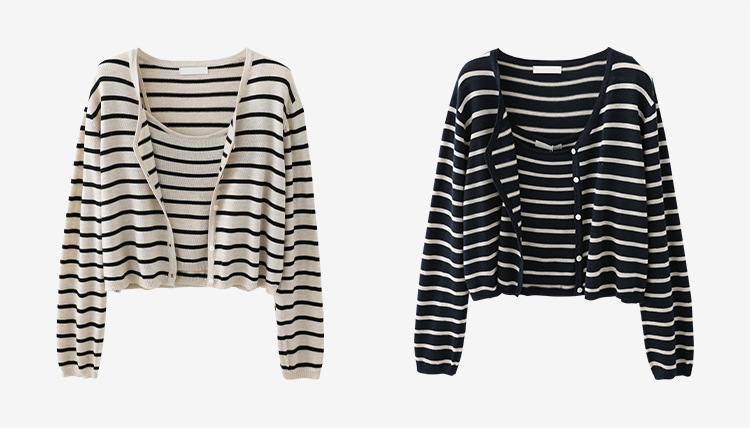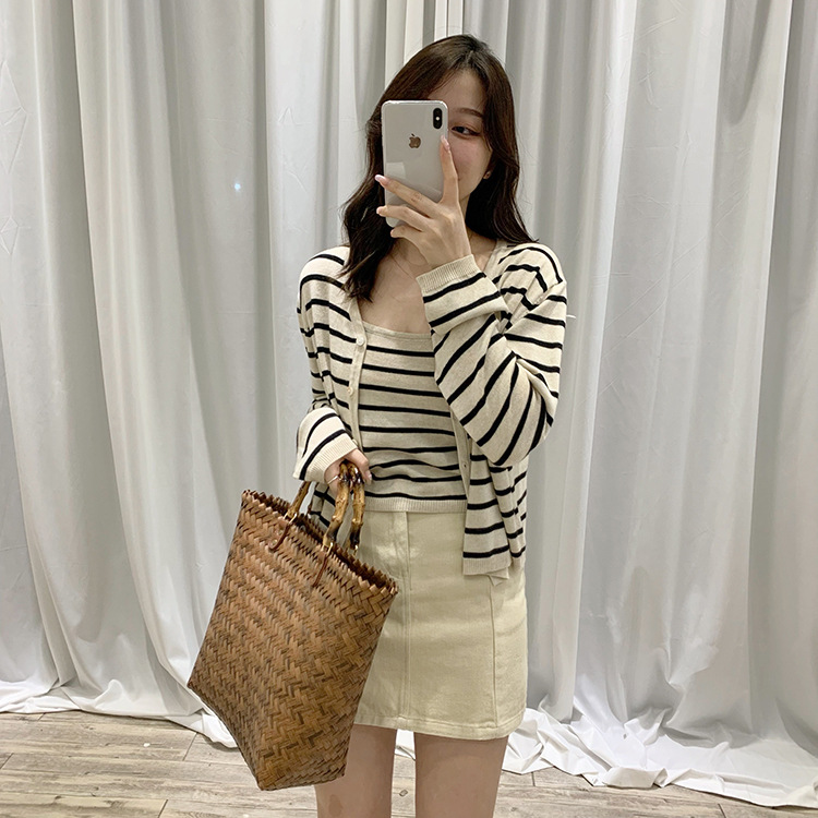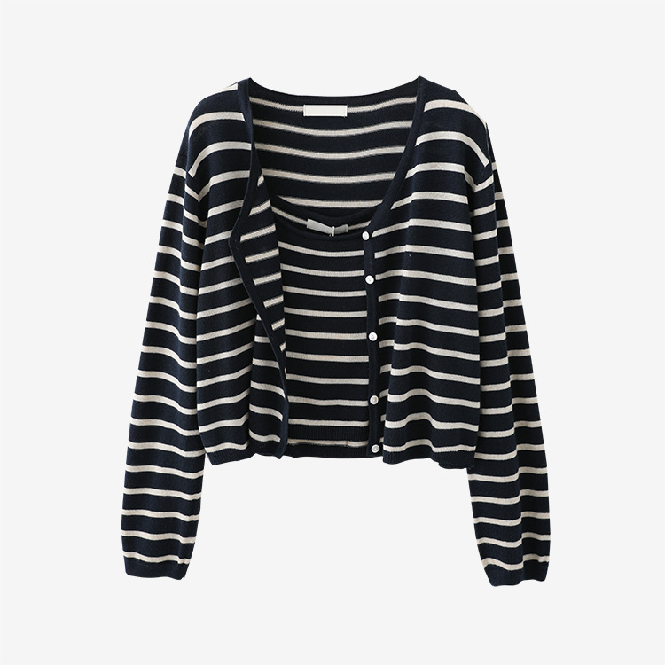 스파이스 걸스 순수한 욕망 줄무늬 니트 카디건 슬링 조끼 가을 새로운 올 매치 웨스턴 스타일 세련된 탑