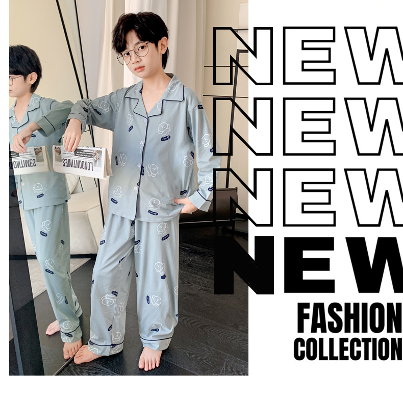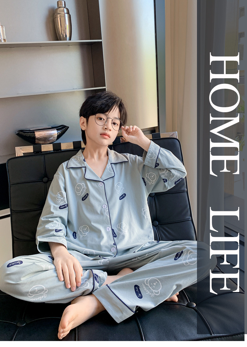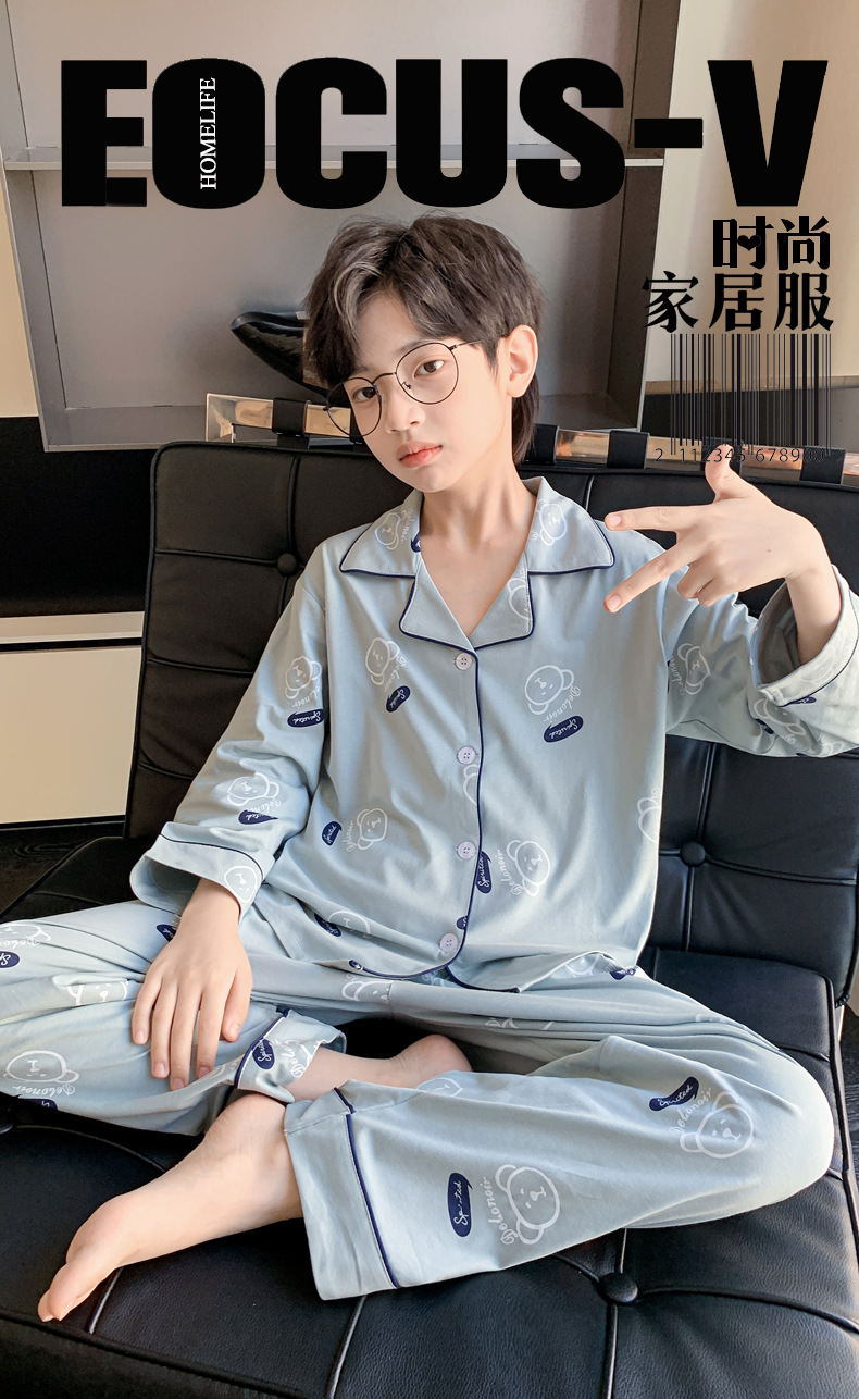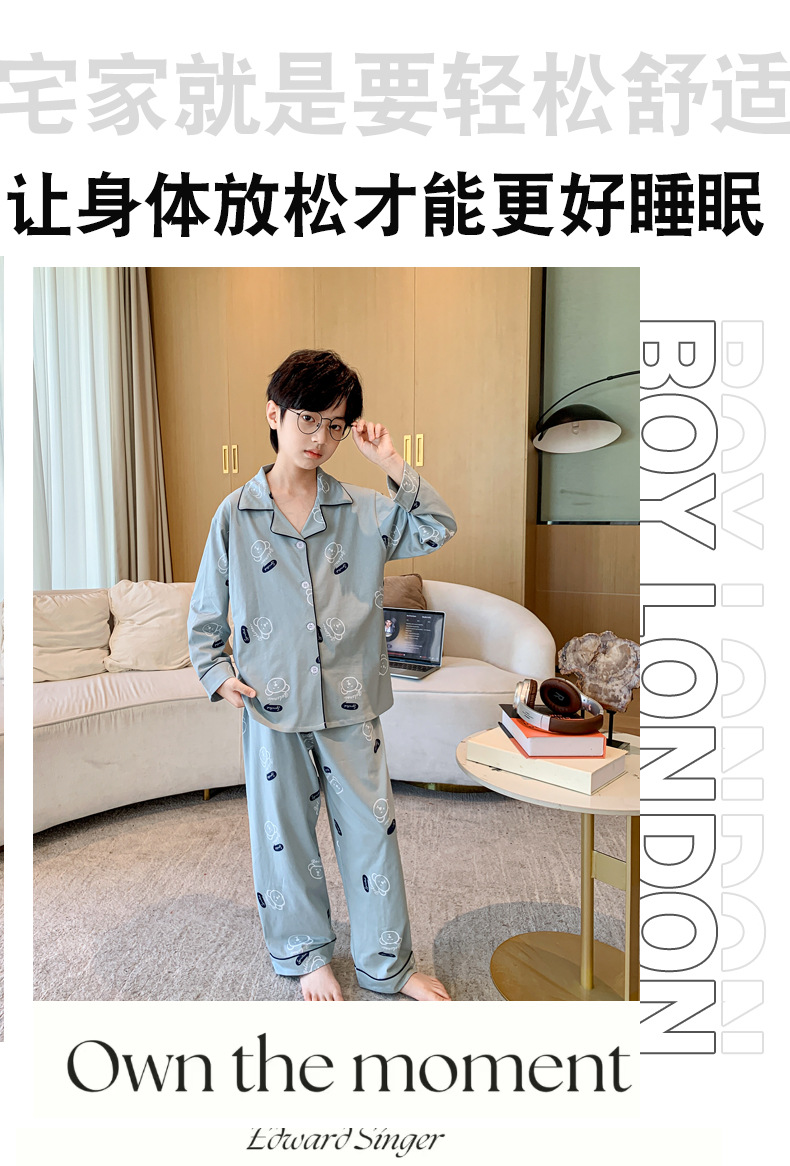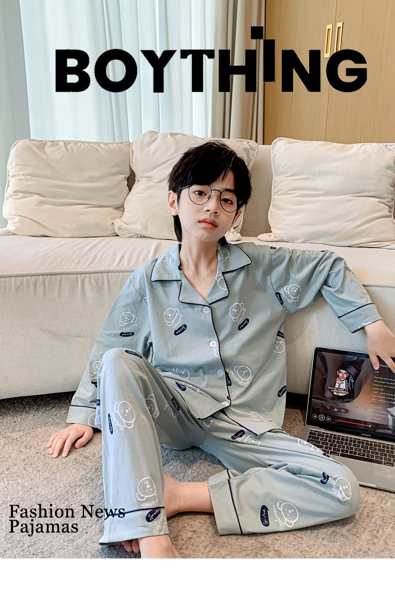 소년 잠옷 어린이 순면 긴팔 가을 스타일 큰 어린이 2025 새로운 봄, 가을 청소년 어린 소년 가정 의류스토어 가기