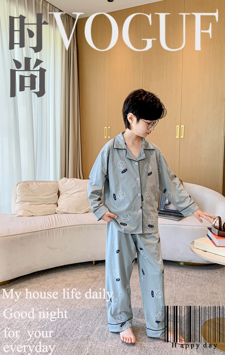 소년 잠옷 어린이 순면 긴팔 가을 스타일 큰 어린이 2025 새로운 봄, 가을 청소년 어린 소년 가정 의류