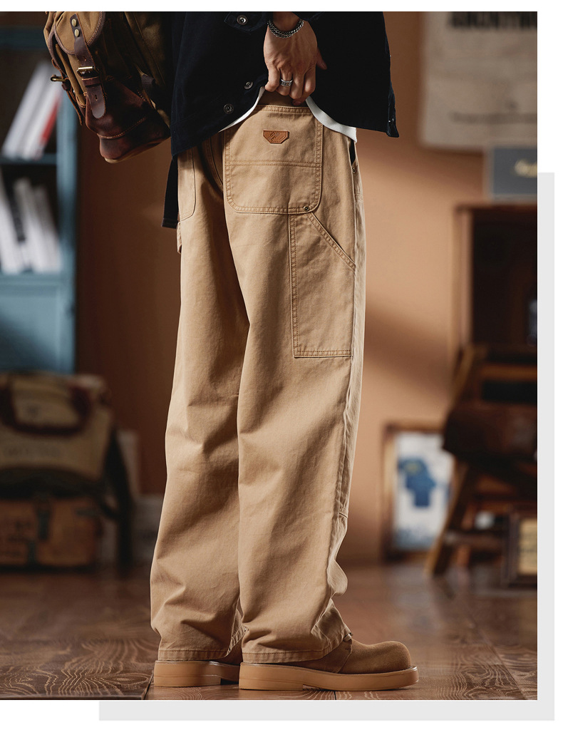 플러스 사이즈 남자의 가을 새로운 일본 복고풍 군중 바지 남자 도시 기능 느슨한 세척 스트레이트 캐주얼 바지