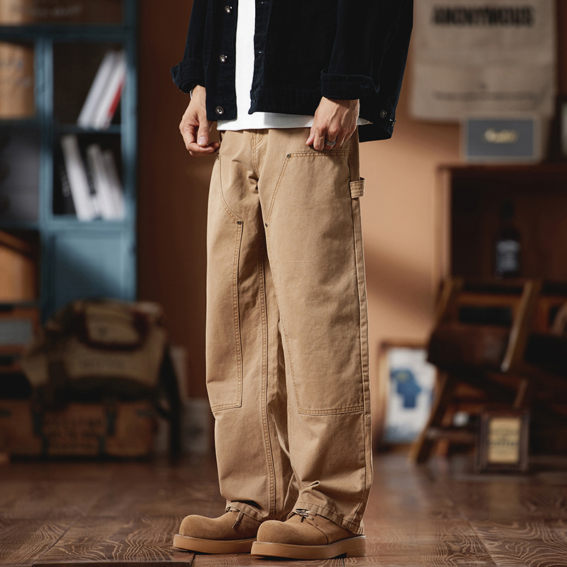 플러스 사이즈 남자의 가을 새로운 일본 복고풍 군중 바지 남자 도시 기능 느슨한 세척 스트레이트 캐주얼 바지스토어 가기