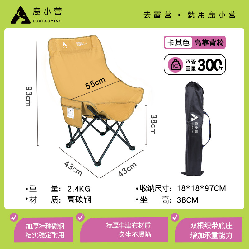 사슴 캠프 하이 백 문 의자 야외 캠핑 피크닉 파티 홈 캠핑 BBQ 점심 휴식 편안한 접이식 의자