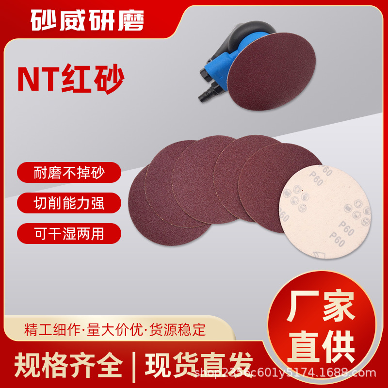 NT 붉은 모래 녹 방지 사포 시트 샌더 백 벨벳 솔질 시트 자체 접착 디스크 사포 시트 도매 제조 업체
