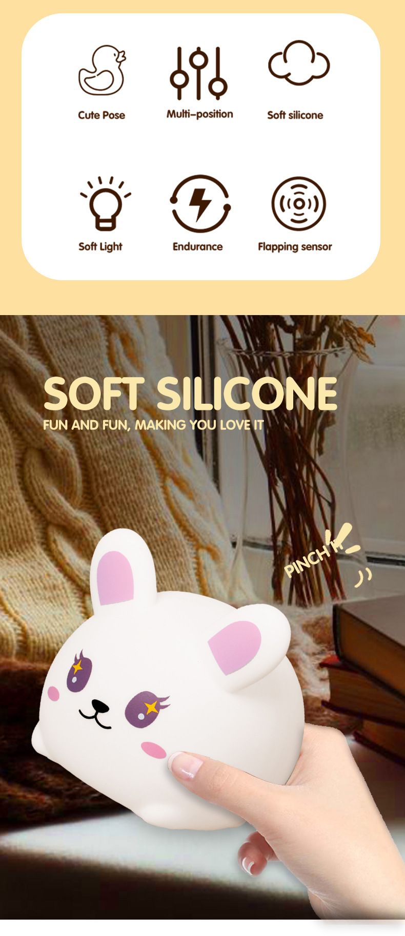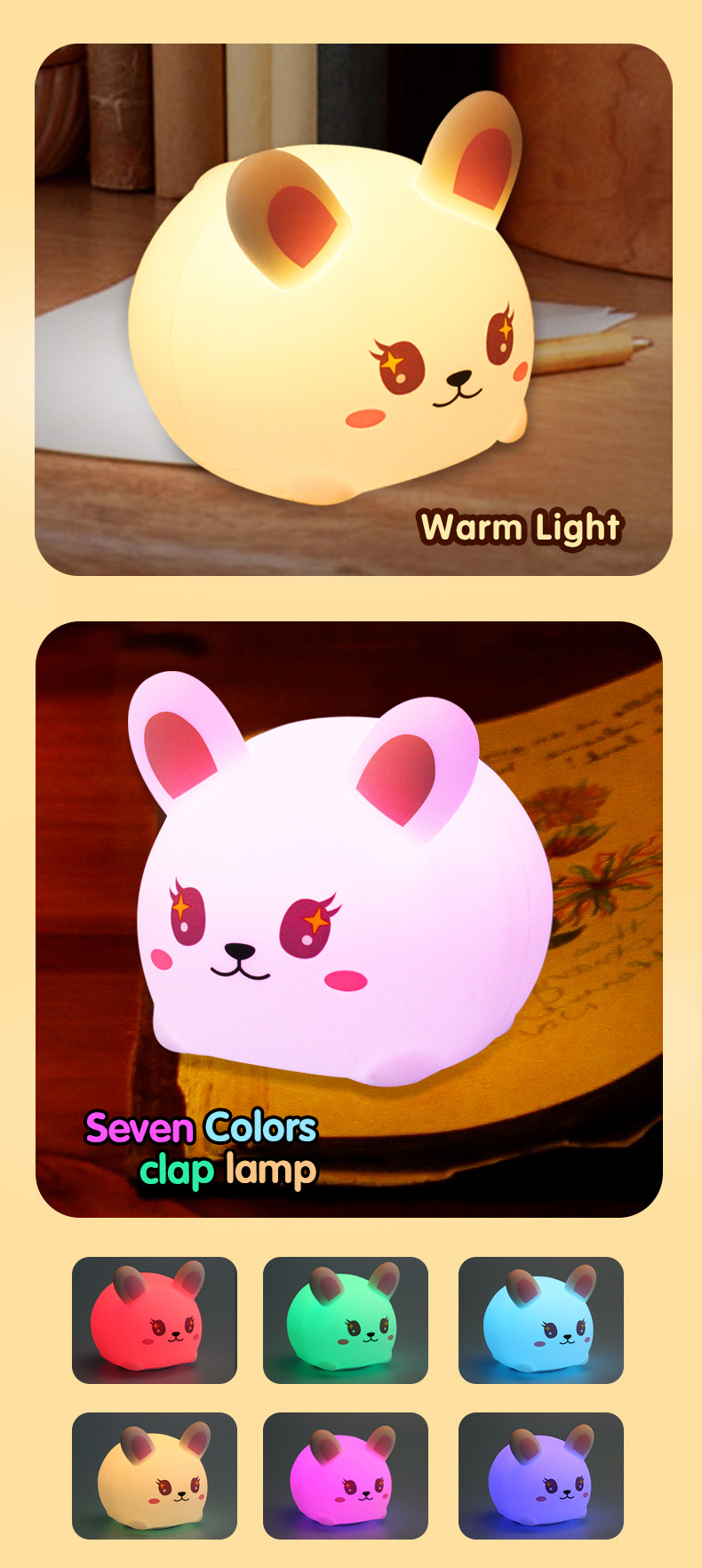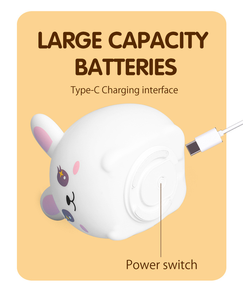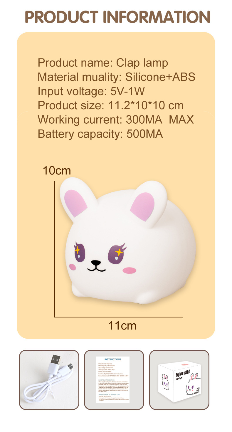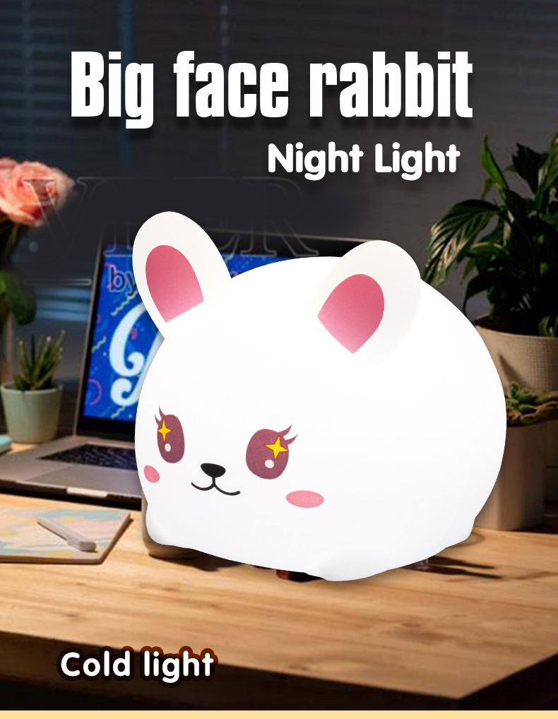 큰 얼굴 토끼 실리콘 밤 빛 팻 빛 흰색 빛 따뜻한 빛 다채로운 빛 밤 빛 유도 빛 선물 귀여운 빛