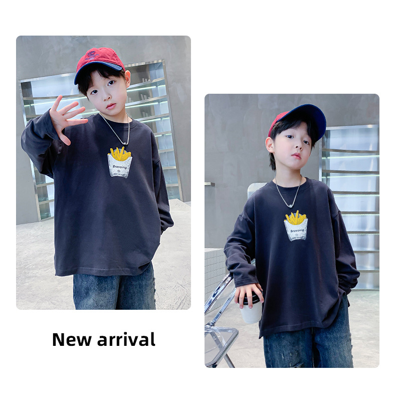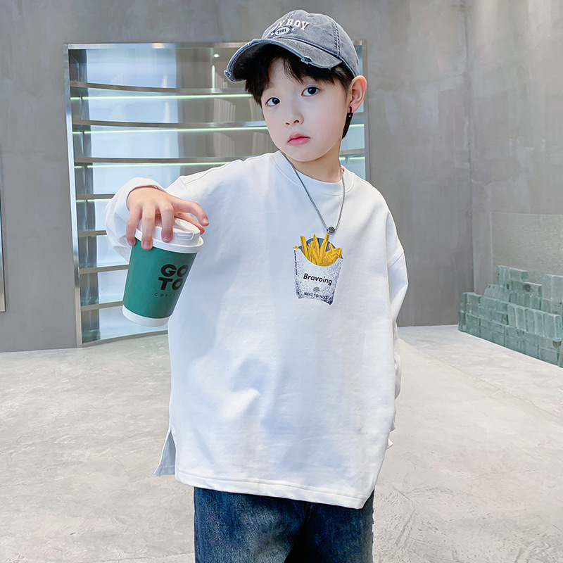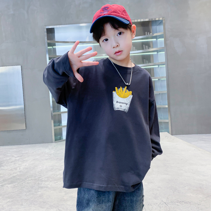 봄 중대형 소년 긴팔 티셔츠 새로운 아동복 아동 소년 편지 탑 느슨한 성격 유행 t 세대스토어 가기