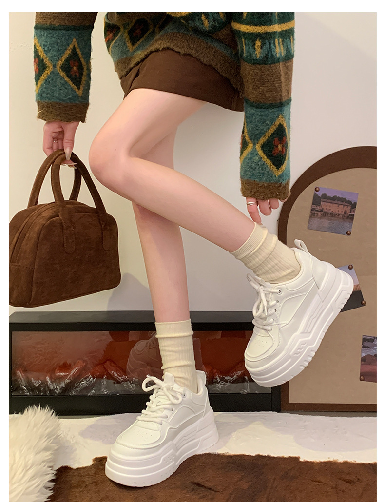 흰색 두꺼운 밑창 신발 증가 화이트 신발 여성 2024 가을 새 한국식 캐주얼 올 매치 스케이트 신발 작은 남성스토어 가기