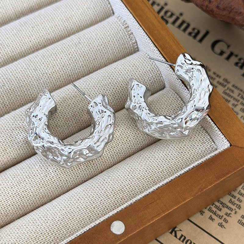 유럽과 미국 국경 아마존 대외 무역 뜨거운 귀걸이 간단한 차가운 바람 폴드 용암 귀걸이 올 매치 통근 귀걸이
