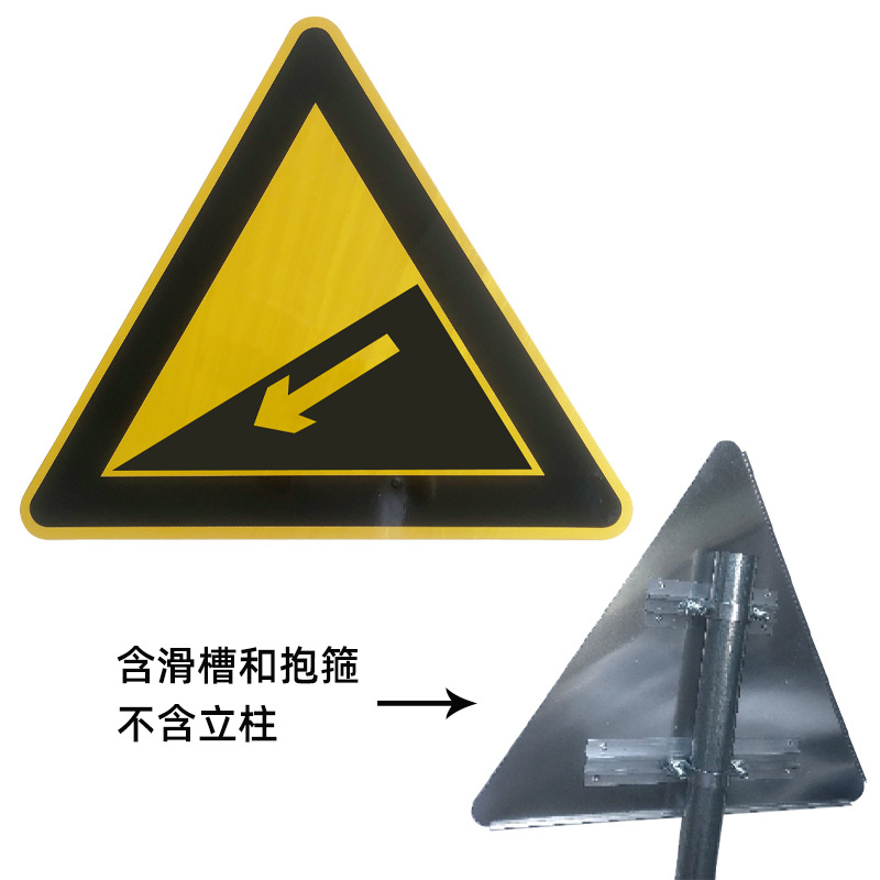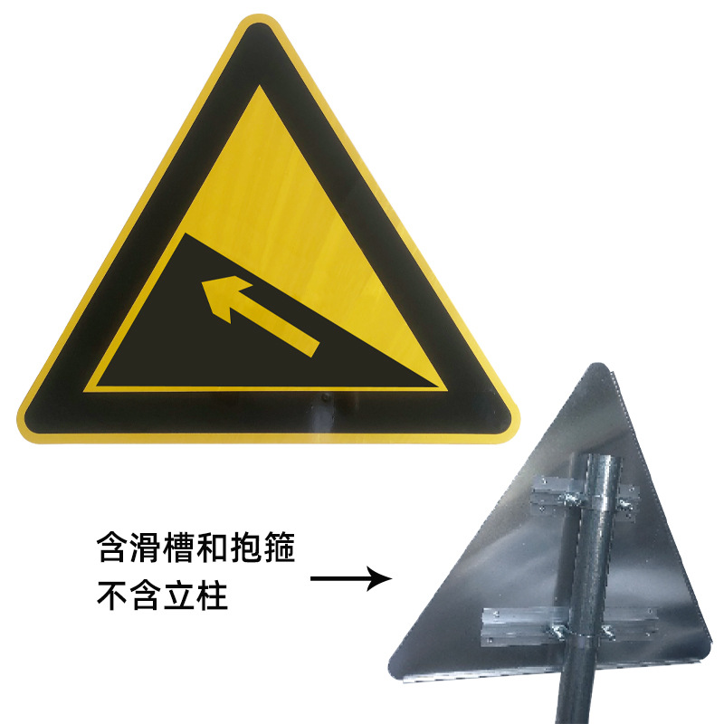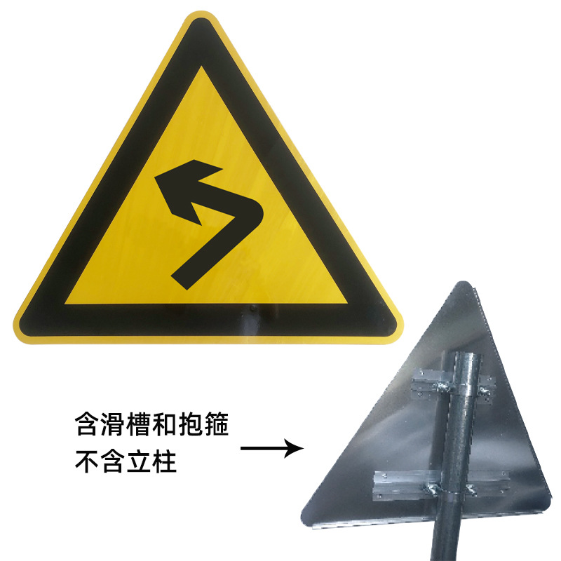 좌회전 긴급 교통 표지판 삼각형 시골 도로 경고 표지판 좌우 긴급 곡선 삼방향 도로 표지판 반사